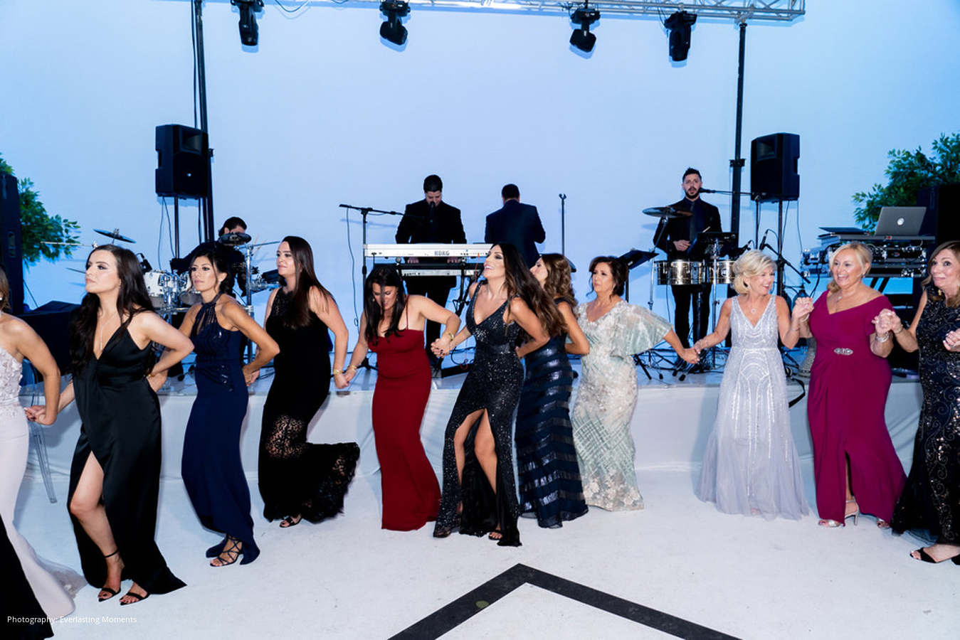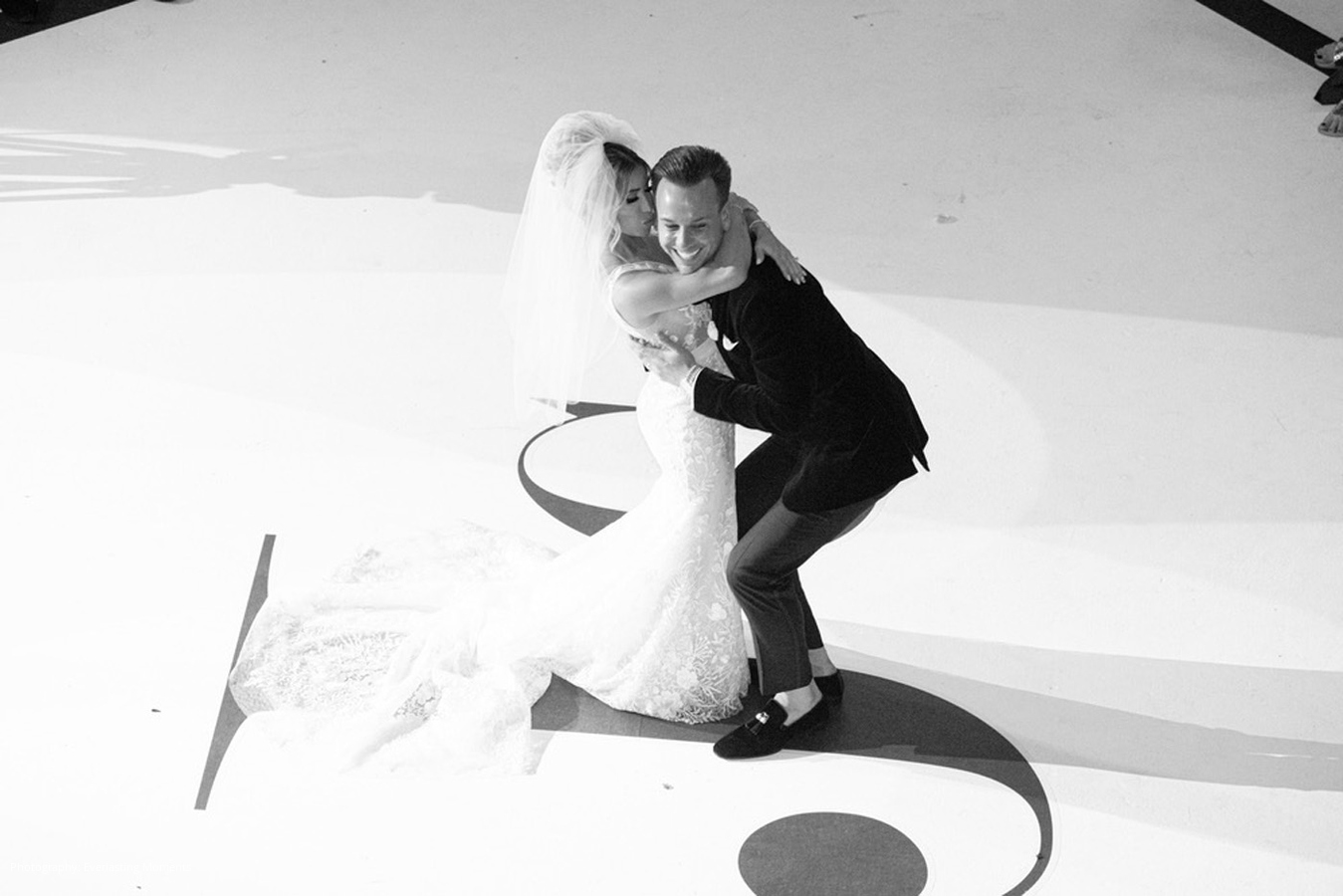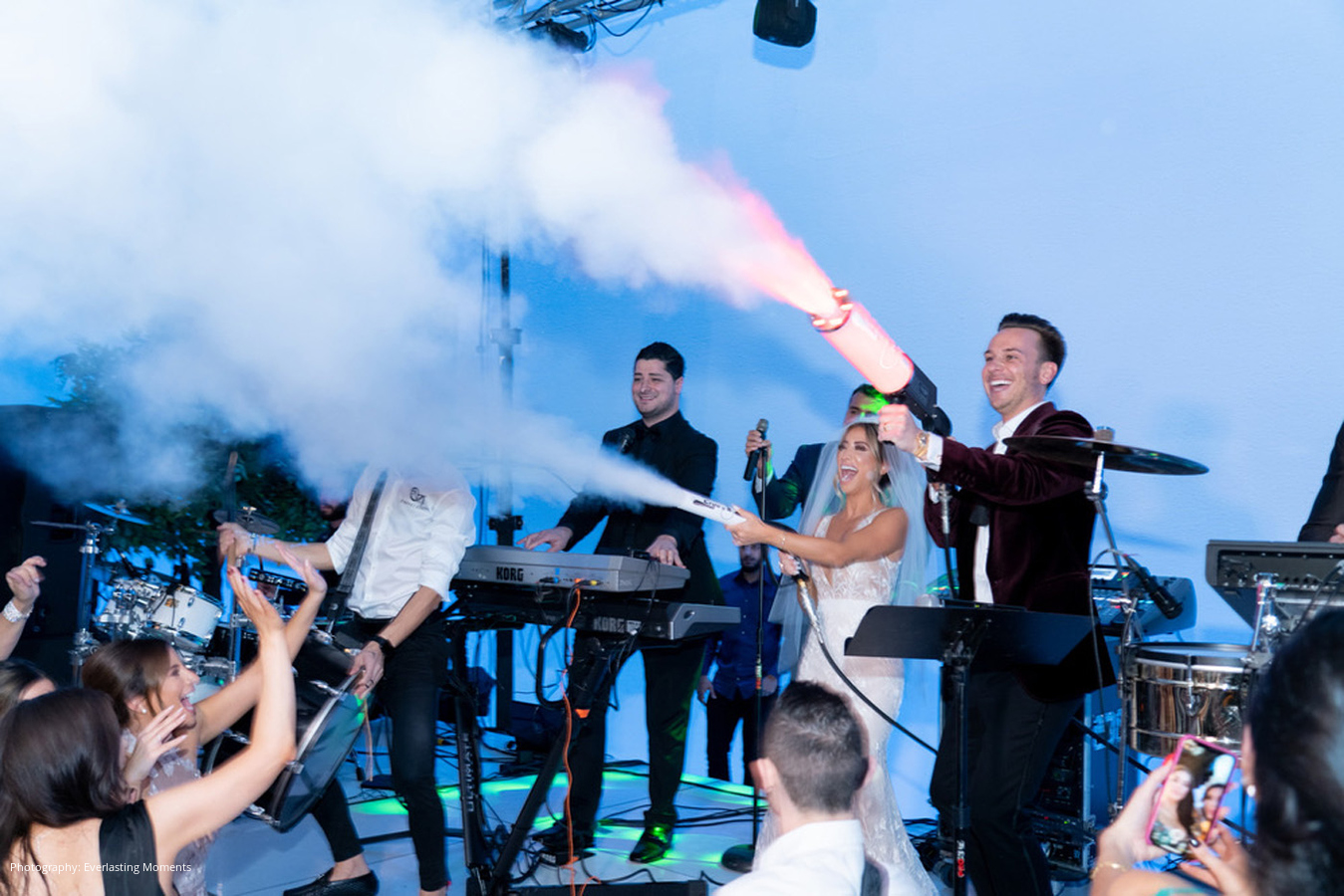 The wedding turned out to be an absolute dream, with the reception giving off a magical, modern, and sexy vibe. Details such as boxed floral arrangements, modern table rentals, floral swings, CO2 blasters, a suspended cake, and music by Nuclassica all served to create the most incredible ambiance. As the evening progressed, other special moments included the bride and groom’s outfit changes, gyros for a midnight snack, and a cappuccino bar.