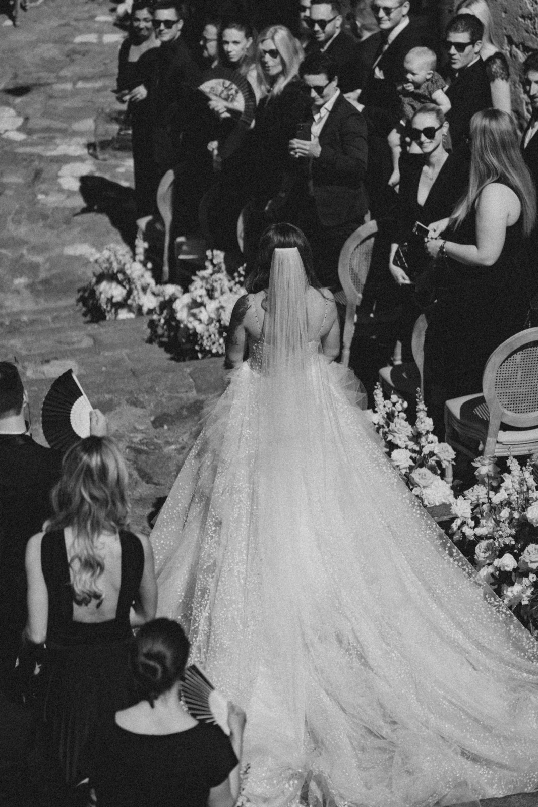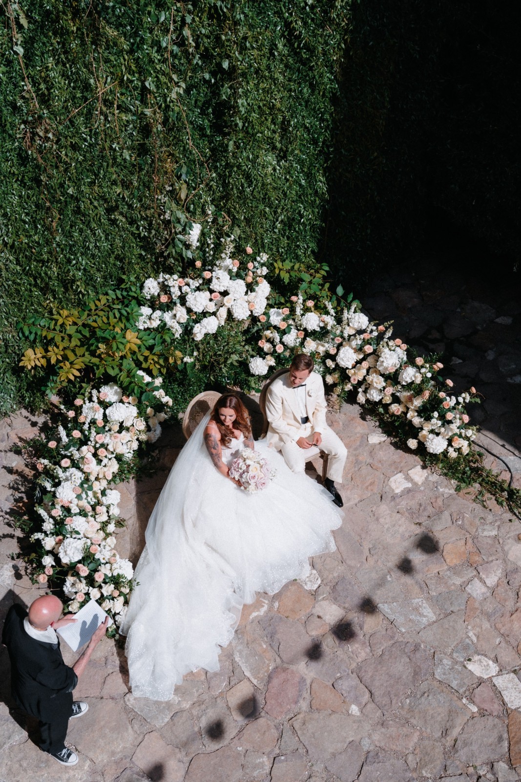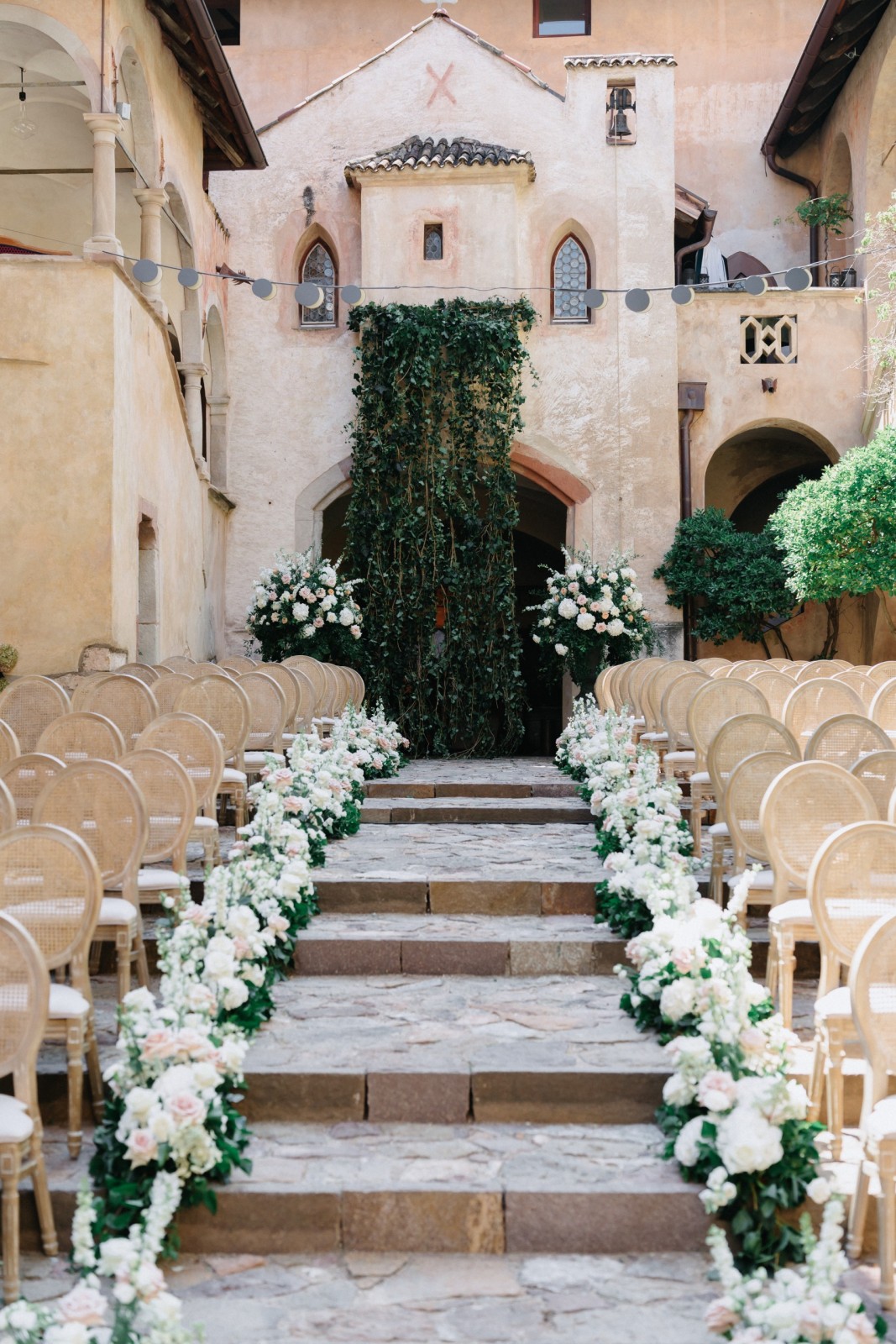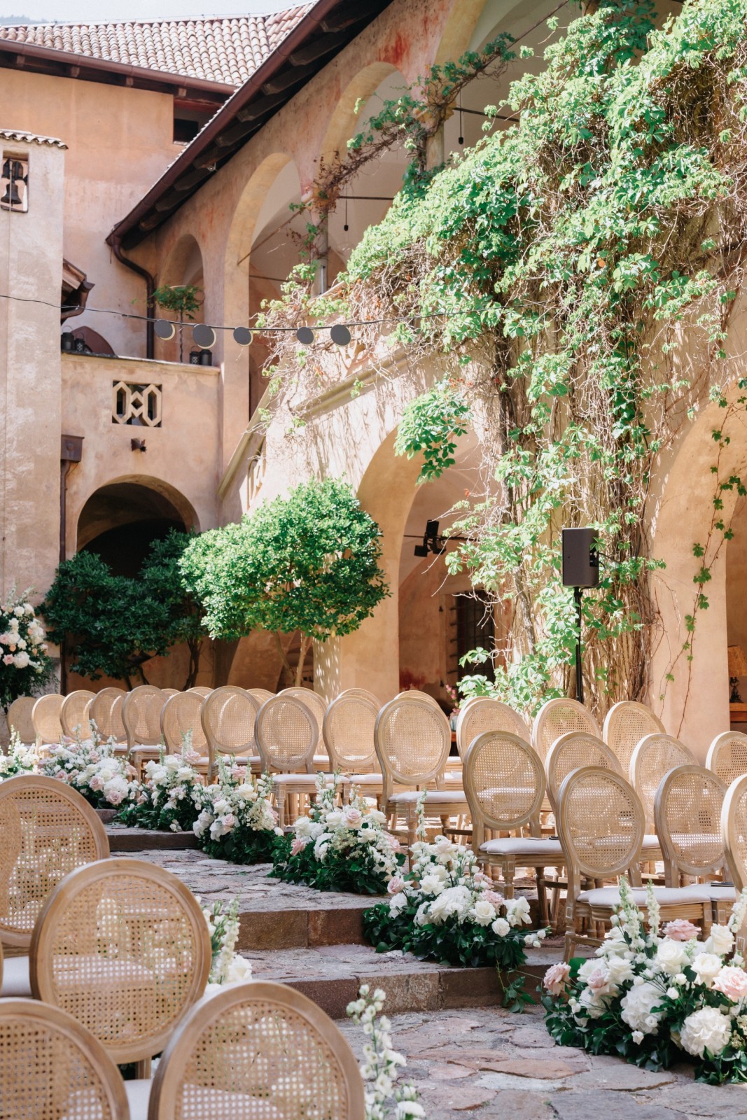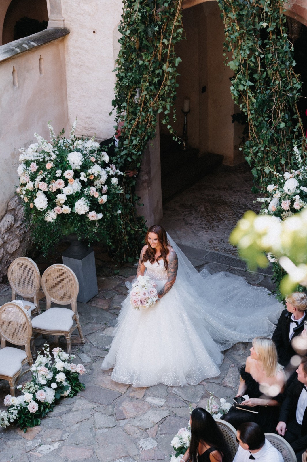 Location: Schloss Freudenstein, Südtirol, Italy; Planning & Event Design: Fine Weddings & Parties, Hamburg, Germany; Floral Design: JOSA Floral Storytelling, Germany; Rentals: von Rock, Celebrate and Love, Berlin; Lighting: Light Sound & More, Germany; Invitations: Nicnillas Ink, Detmold, Germany; Cinematography: Andre Schlechte, Germany; Photography: Haus of Birkhof, Berlin, Germany, HopeStudio, Düsseldorf Germany
