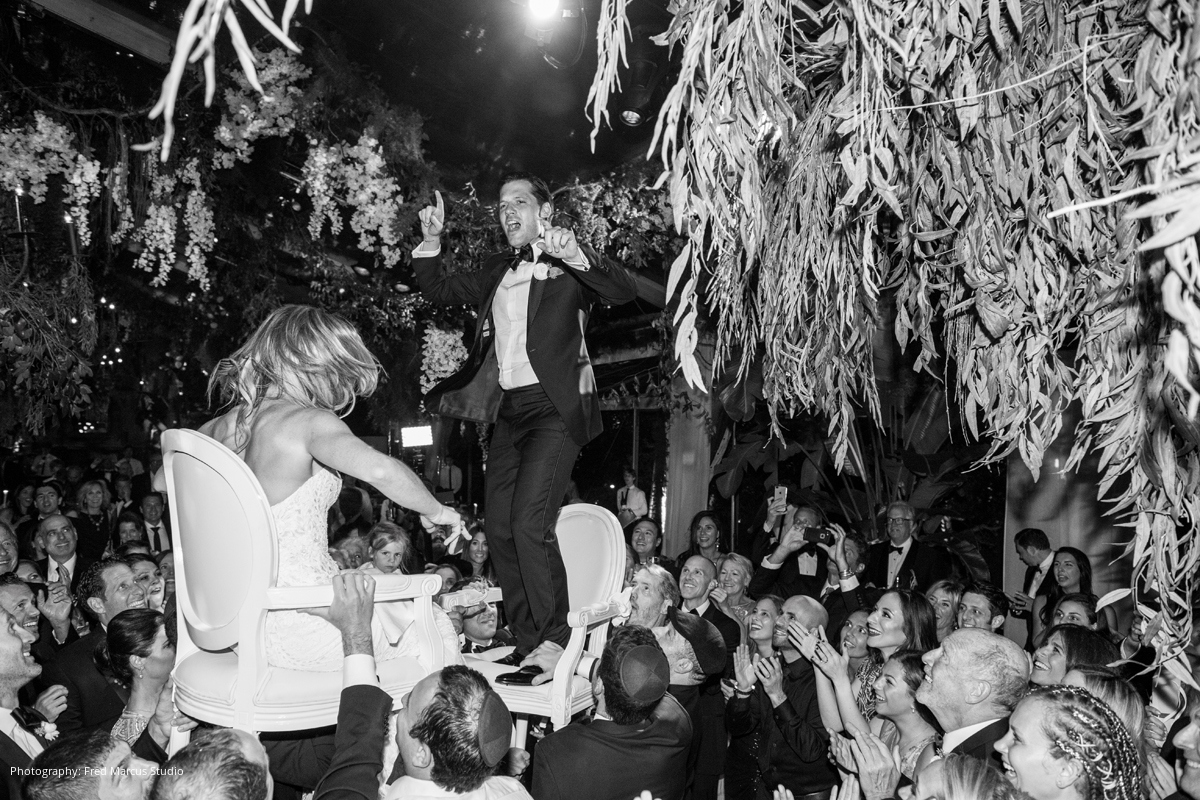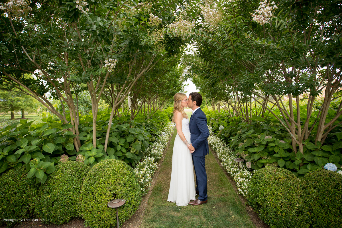 Inspired by a place in the bride’s old backyard that she had named “Wonderland,” an expanded version of that childhood memory was recreated for the wedding, turning the entire space into its own “Midsummer Night’s Dream” filled with wisteria, weeping willows, and the romance of an enchanted forest. There were even secret passageways lit with lanterns, adding to the ethereal ambiance of the evening.