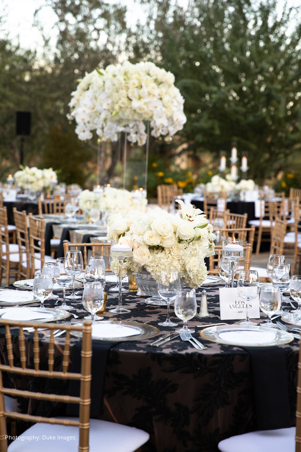 Planning & Event Design: Elite Events, Seattle, WA; Floral Design: Butterfly Floral & Event Design, Los Angeles, CA; Dress: Justin Alexander; Linen: La Tavola Fine Linen, Los Angeles, CA;