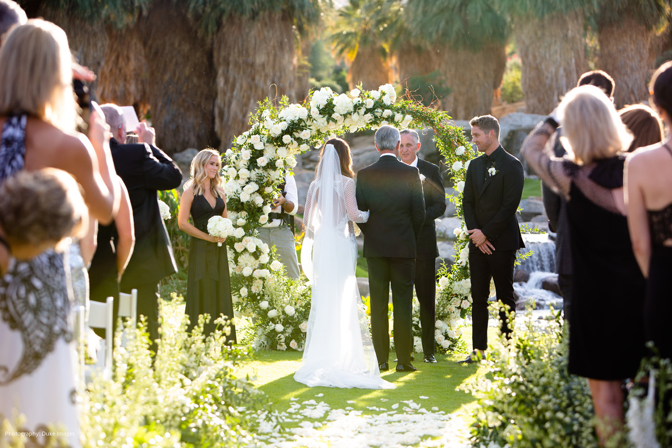 After their engagement, the couple only had eight months to plan a destination wedding in Palm Desert, California. Taylor knew she wanted to have a modern and romantic wedding weekend filled with understated elegance, but she wasn’t sure where to begin the wedding planning process. Fortunately, she came across a local planning company – Elite Events.