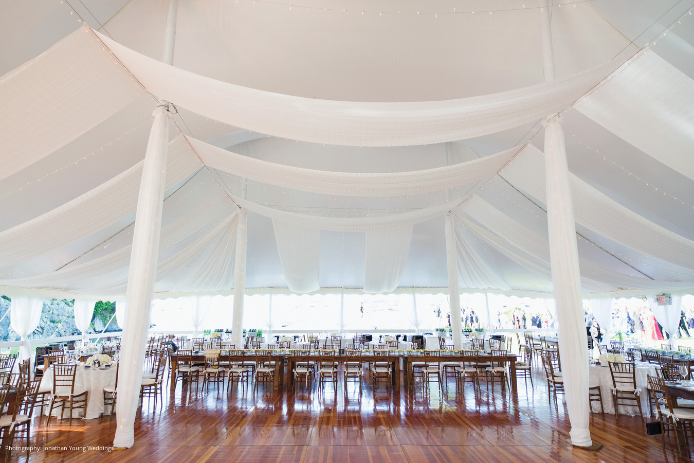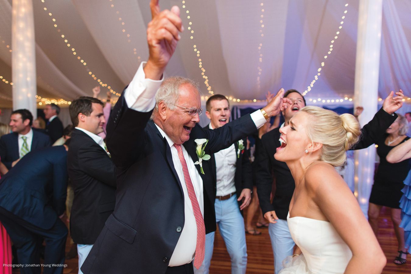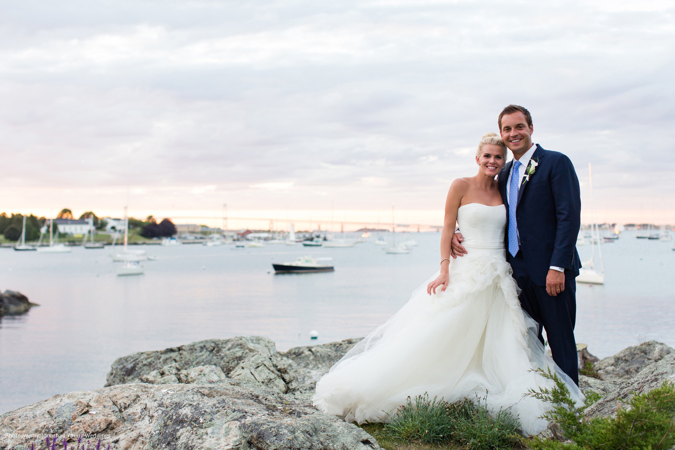 Location: Private Residence; Caterer: Russell Morin Catering & Events, Newport, RI; Event Design and Planner, Lighting: Exquisite Events Details & Décor, Newport, RI; Linen and Rentals: Rentals Unlimited, Stoughton, MA; Entertainment: Decades by DeZyne, Boston, MA; Stationery: Rugg Road Paper Company, Boston, MA; Wedding Dress: Vera Wang; Groom’s Tuxedo: J.Hilburn