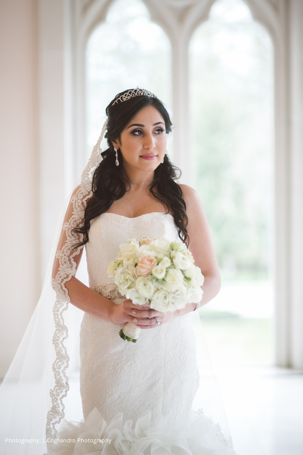 April showers were falling on the day of the wedding, but the weather only made the event that much cozier. “One special memory from that day was seeing my favorite uncle, who passed away about two months later at a young age,” says the bride. “I am so blessed that I was able to see him one last time, and in such a happy setting–dancing and laughing the night away. His laughter and smiles that night are forever ingrained in my heart, and watching him in my wedding video later meant the world to me.”