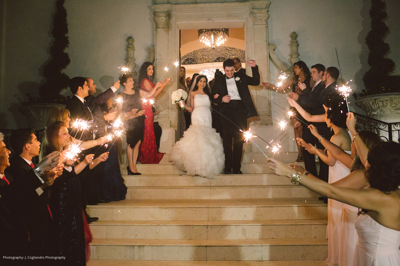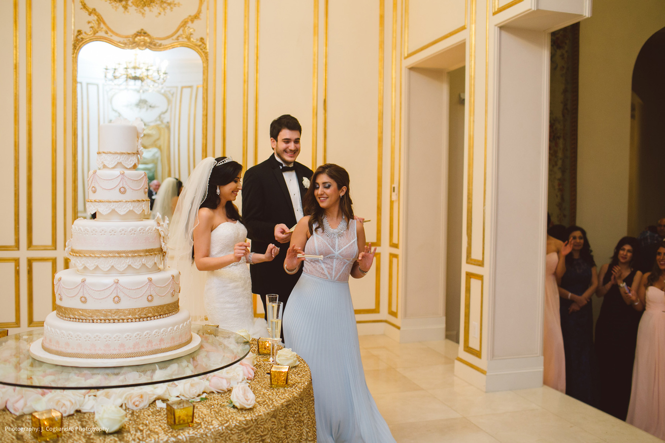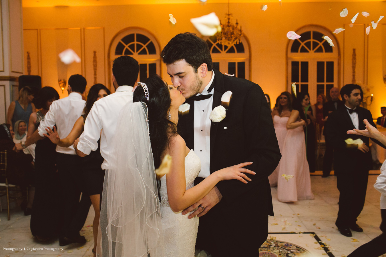 From the moment they saw Chateau Cocomar, the newly-engaged couple knew it would be a magical place to host their special day. With both of them being Persian, they also knew their wedding had to be nothing short of glamorous. There was something beautiful in every crevice of the French-inspired castle, from sweeping archways to extravagant chandeliers. The gold accents on the castle’s ivory walls also served as inspiration for their wedding theme colors, which was a combination of gold, ivory, and blush pink.