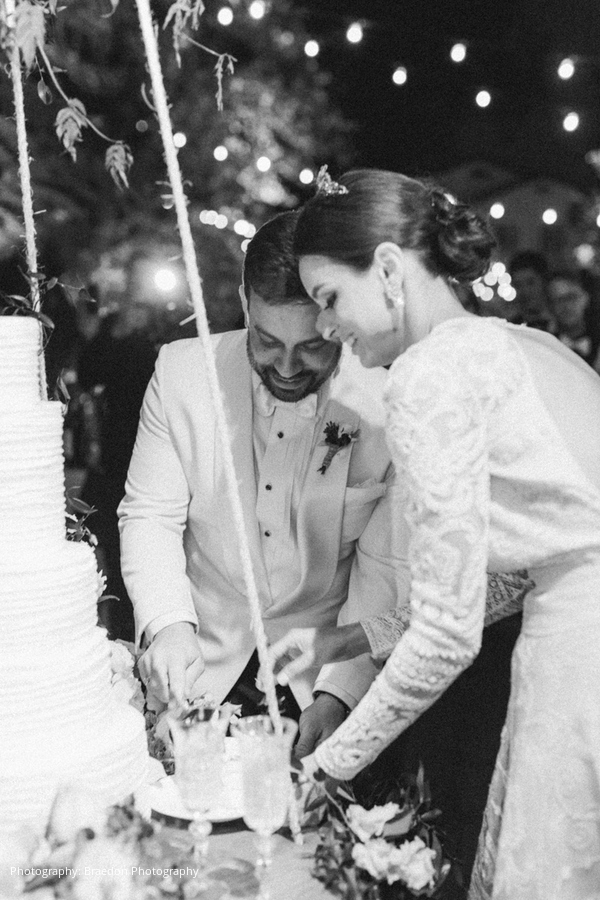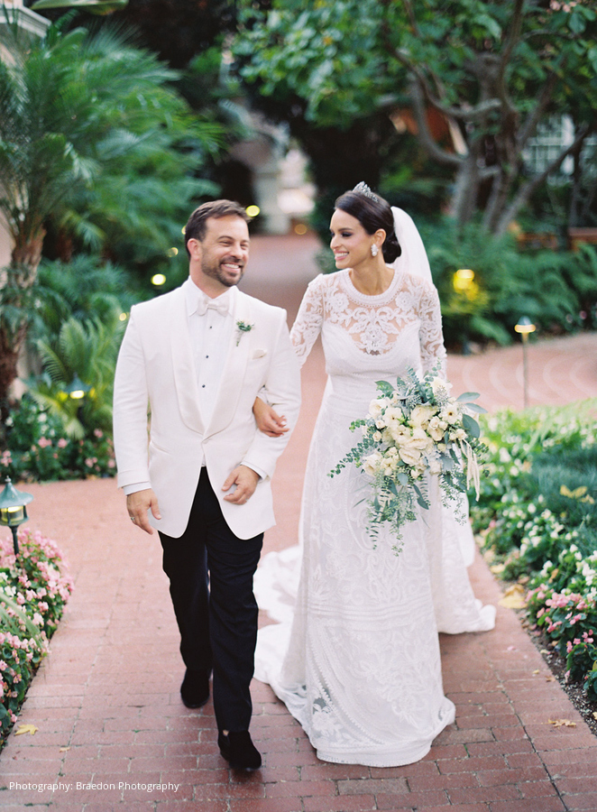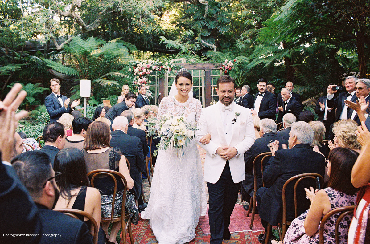 Location, Caterer and Cake: Hotel Bel-Air Los Angeles, CA; Ceremony Dress: Naeem Khan;