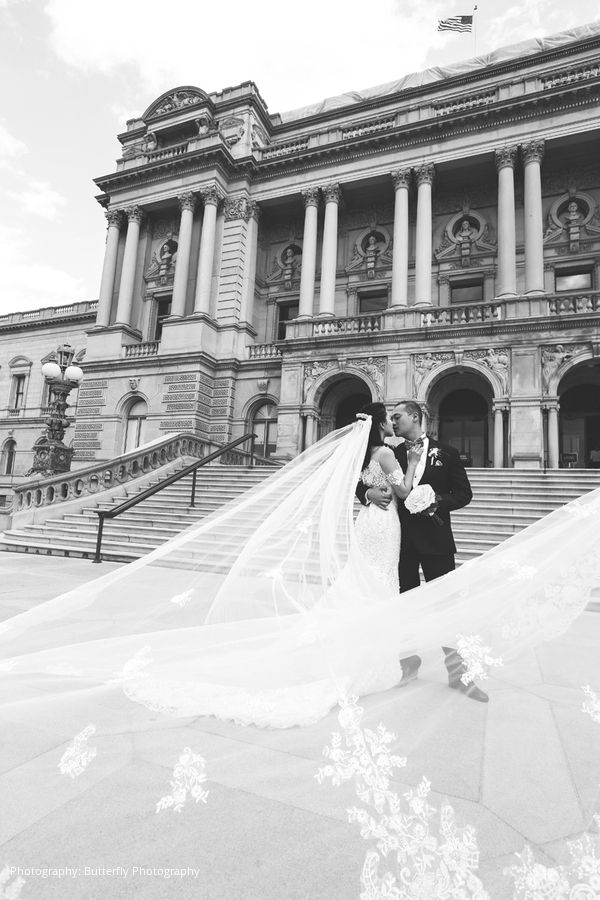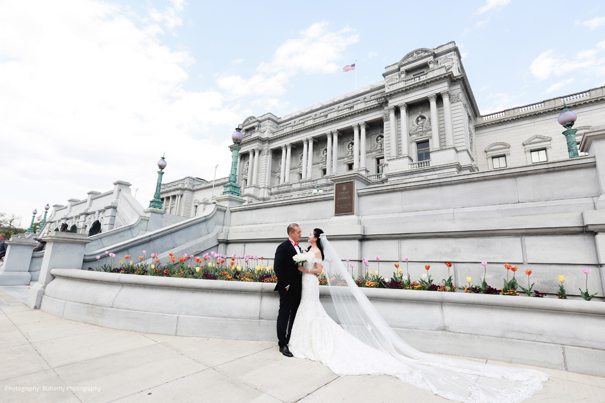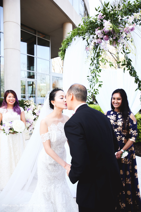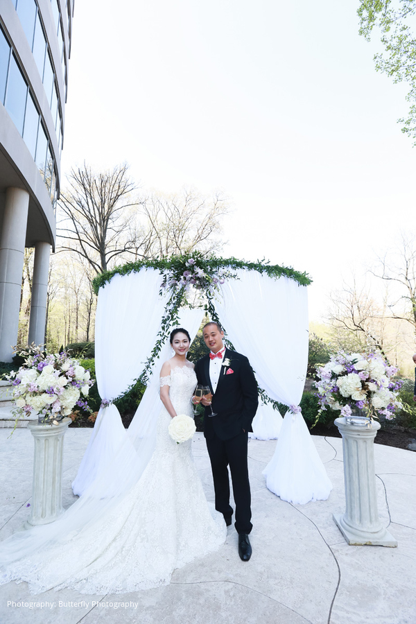 River and Stephen planned for their wedding to carry as much symbolism as their engagement festivities. River’s psychic abilities led her to hire the Washington D.C. wedding guru Exceptional Events by Elisa to plan, design, and coordinate the day of the wedding with great attention to symbolism and detail. The bride chose a complementary set of award-winning event professionals to round out the team, including Butterfly Photography, Brookhill Florist, and Bowen Films. As restaurateurs and foodies, the couple chose to celebrate their nuptials at the highly acclaimed 2941 Restaurant. River and Stephen’s ceremony was attended by close family and friends, and was gracefully framed by koi ponds, waterfalls, and a lakeside view.