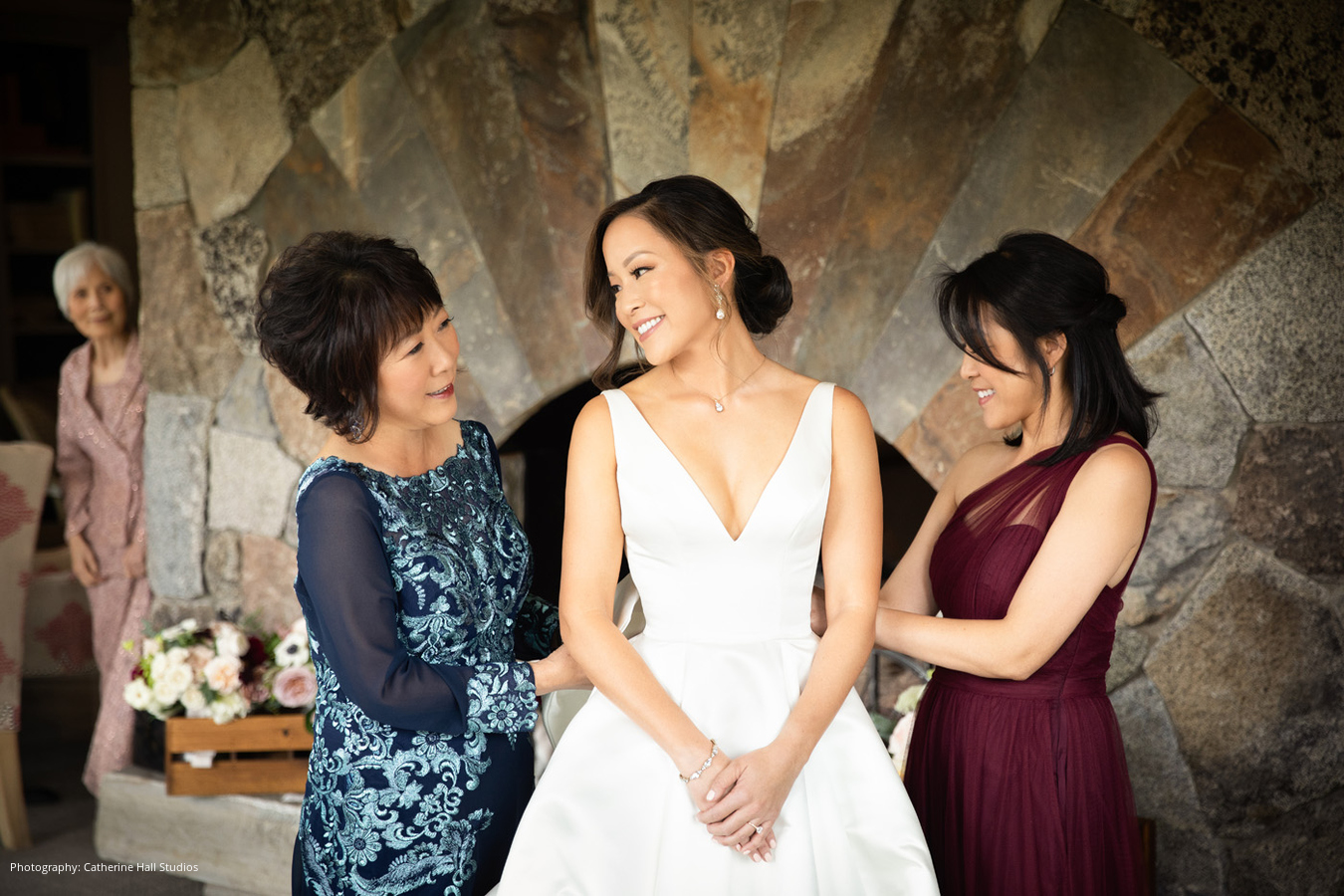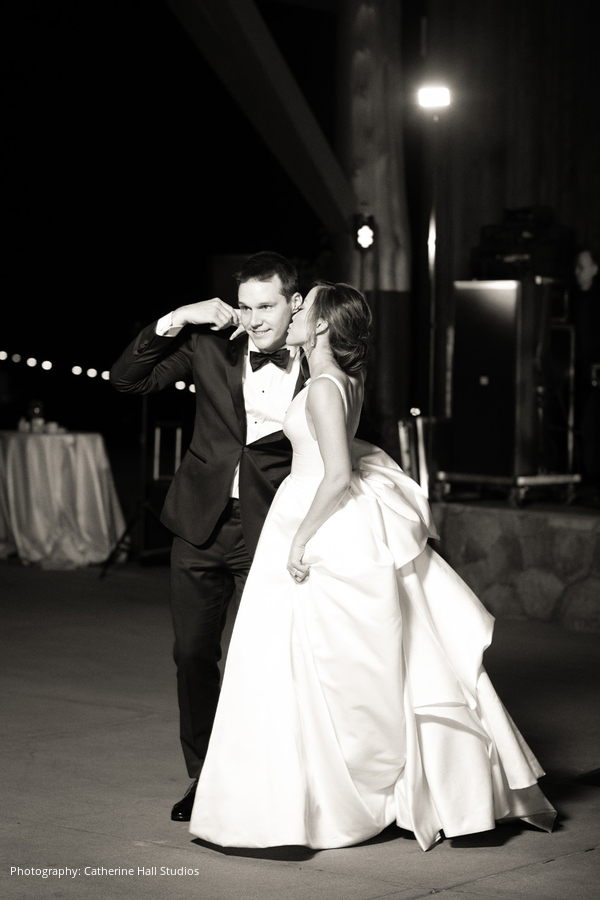 Location: Martis Camp Lodge, Truckee, CA; Planning & Event Design: Audere Events, Reno, NV; Floral Design: Stems by Diana, Lake Tahoe, CA; Rentals: Celebrations Reno, NV; Linens: LA Tavola, Napa, CA; Wedding Dress: Monique Lhuillier; Bridal Salon: Bridal Galleria, San Francisco, CA; Groom's Attire: Hugo Boss