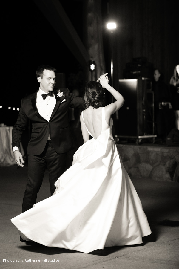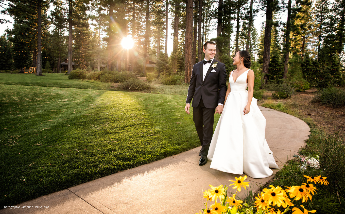 When it came to finding a venue for their September wedding, the couple knew exactly where to go: Martis Camp, a leafy, 2177-acre site in the Truckee Valley that had become a beloved place for the couple, who share a love of fitness. Dur-ing their courtship, Brandon, who works in finance, got Leslie, a dentist, back into skiing. Every ski season, the two would make the trip to Martis Camp to hit the slopes. “It’s a special place to us,” the couple says.