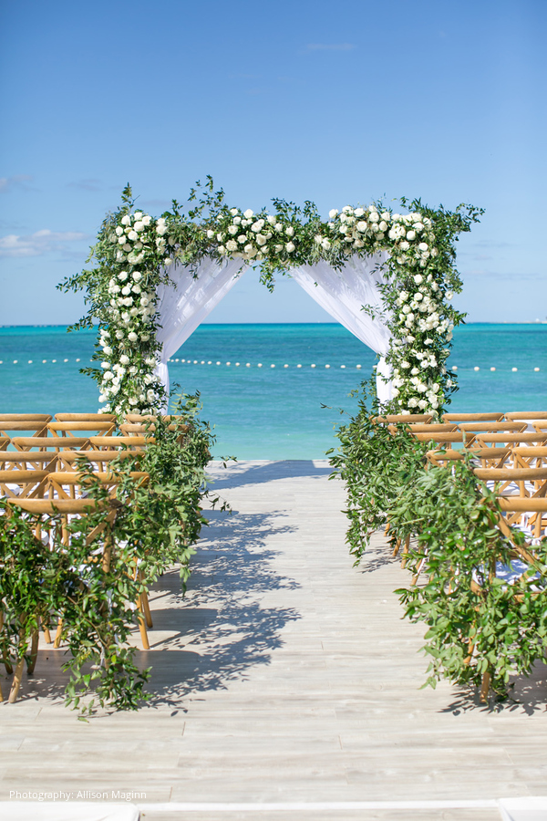 Location: Rosewood Baha Mar, Nassau, Bahama; Planner, Floral & Event Design: A Good Affair, Tustin, CA; Honeymoon Location: Blue Palace Crete