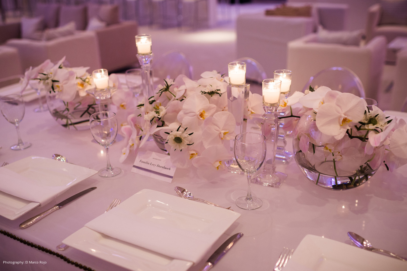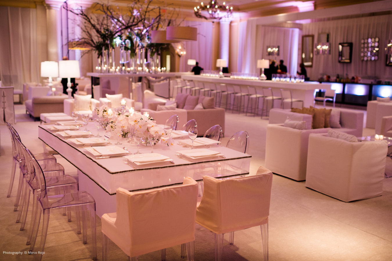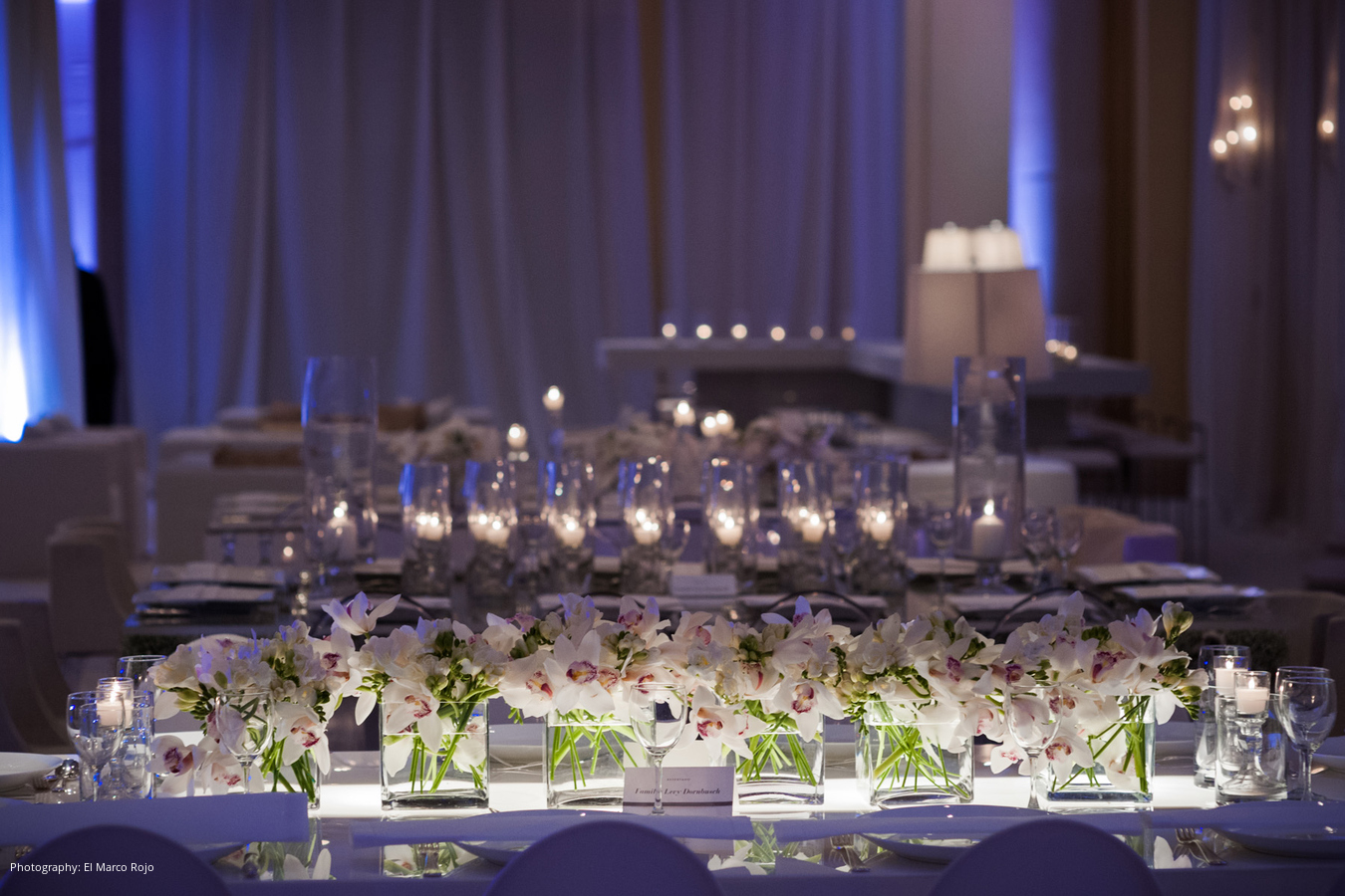 Location and Caterer: The Ritz-Carlton, San Juan San, Juan, Puerto Rico; Event Design and Planner: Forever Events, Miami, FL; Floral Design, Linen, Rentals, Lighting: Emilio Olabarrieta Event Atelier ,San Juan, Puerto Rico; Stationery: Crane & Co.; Wedding Dress and Veil: Angel Sanchez; Groom’s Tuxedo: Armani; Groom’s Shoes: Hugo Boss; Cinematography: Wilfredo Rosado; Honeymoon: Thailand