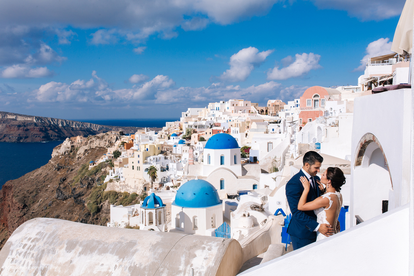 The night before the wedding, the bride and groom-to-be spent the night in separate villas at the magnificent Celestia Grand. While sipping Greek coffee and overlooking the caldera, Erin was filled with a comforting sense of peace, allowing her to enjoy her upcoming wedding day.