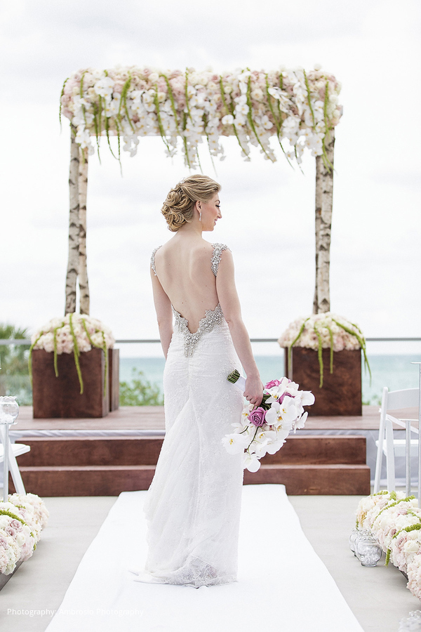 Location: 1 Hotel South Beach, Miami Beach, FL; Planner: Melissa Davis Designs, Miami, FL; Floral and Event Design: Blooming Events International, Miami, FL; Lighting: Sarz Entertainment, Fort Lauderdale, FL; Wedding dress: Inbal Dror; Bride’s Shoes: Jimmy Choo
