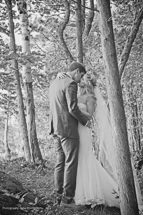 Having a wedding in the woods posed its own challenges. “The space is so natural and beautiful,” says Minnie “so we wanted to keep the decorations and floral design minimal.” The ceremony site sits on a cliff overlooking Lake Champlain, and on the day of the wedding, the sun shone through the trees and a light breeze blew through her veil as they were standing at the stone alter. Because of the complexities of getting married in the woods and then transporting guests 45 minutes away for the reception, coordination with their event planner and other vendors was key in making sure that the event ran smoothly and that guests enjoyed the adventure of the day.
