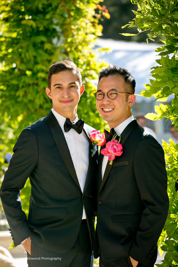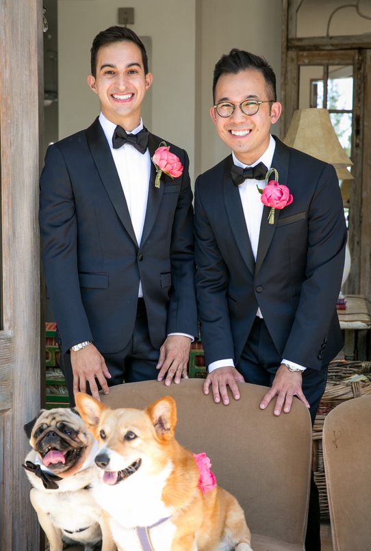 It was an intimate wedding weekend in May of 2015, which was seven years after the couple met. With Napa Valley in the background, the ceremony was filled with laughter and joyful tears as the grooms read personal vows they wrote for each other in front of their family, close friends, and dogs (Paco and Bobo). A string trio played a variety of songs including “Reign of Love” by Coldplay, “Love On Top” by Beyonce, and the newlyweds had their first dance to a custom arrangement of Janelle Monae’s “What An Experience.”