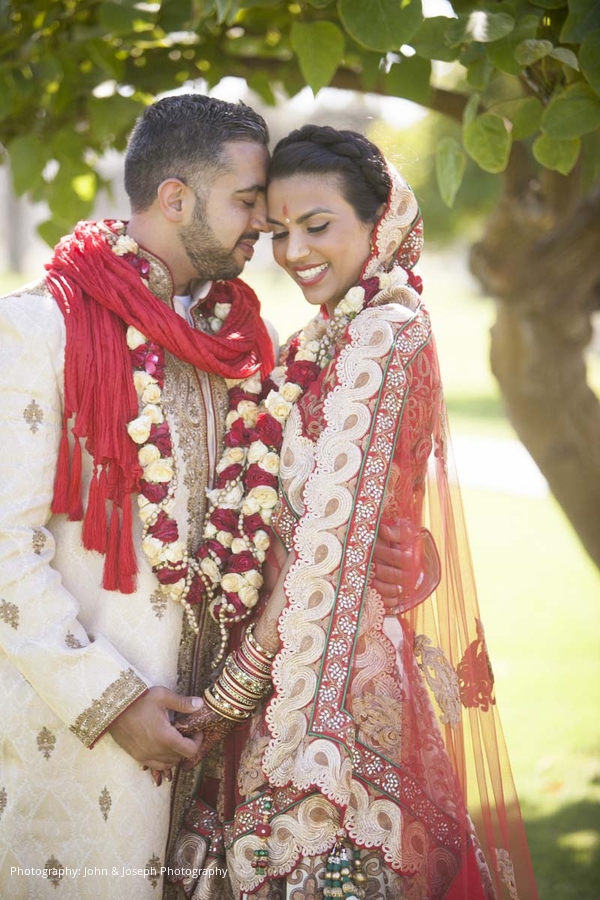“It was so amazing to be surrounded by such strong, loving women from both sides of our families, and I loved being able to share those moments with them on the Mandap.” She also wore her mother’s stunning wedding-day jewelry and, as is custom in Indian weddings, was walked down the aisle by her aunt and two uncles.
