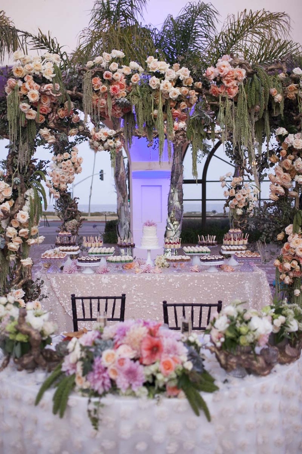 Cake and Dessert Table: Sweet and Saucy Shop, Long Beach, CA; Planner: Thomas Bui Lifestyle, San Diego, CA; Floral Design: Eddie Zaratsian Custom Florals and Lifestyle, Los Angeles, CA; Rentals: Chiavari Chair Rentals, Irvine, CA