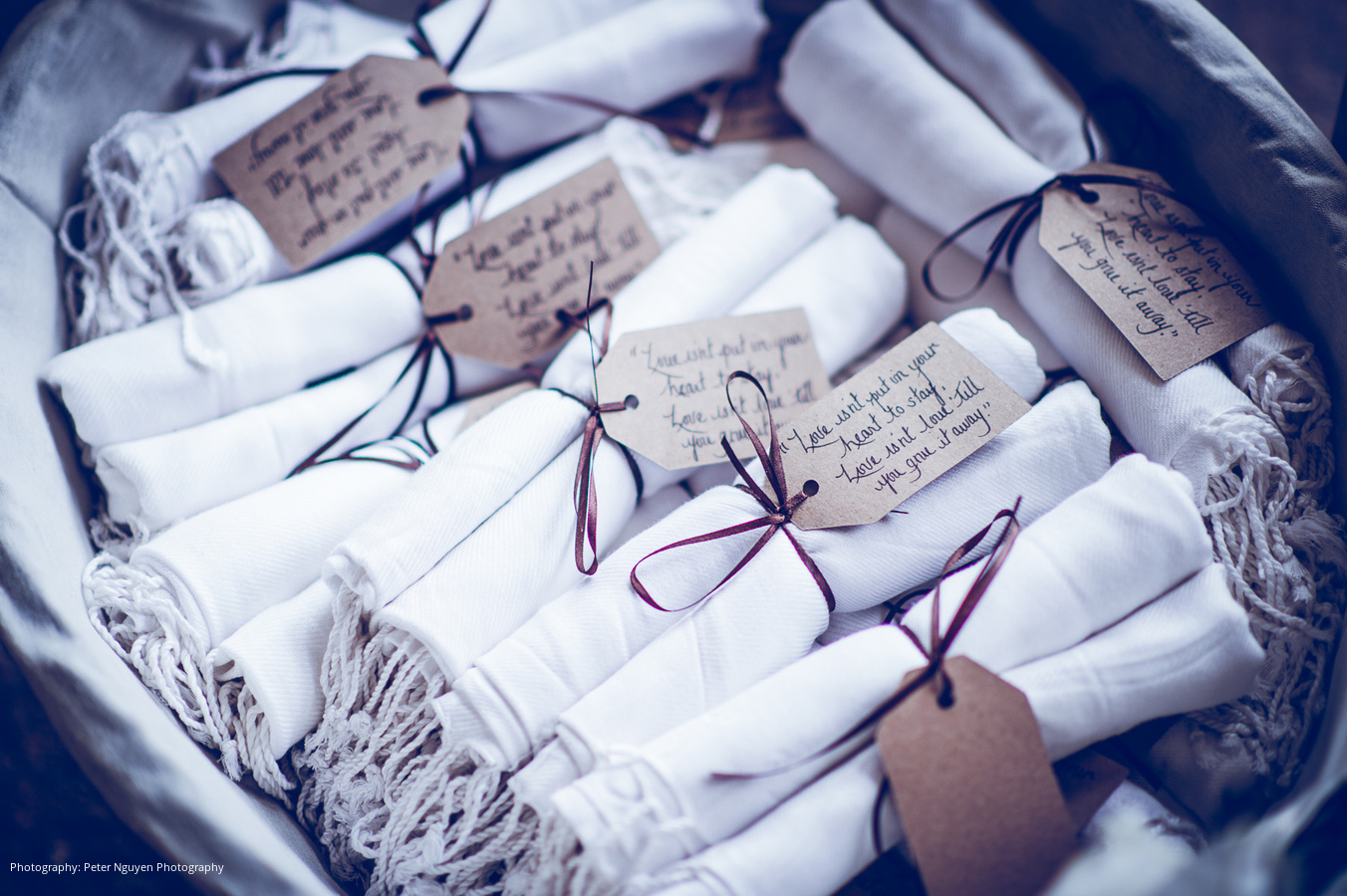 Pashminas were handed out to the ladies to keep them warm, hand-wrapped by Lynn’s mother with a quote from “The Velveteen Rabbit”–“Love isn’t put in our hearts to stay. Love isn’t love ‘til you give it away.” Even the golden chalices Lynn and Graham drank from were from her grandparents’ 50th wedding anniversary, to remember the loved ones that couldn’t be with them. Filled with love, laughter, and dancing, their celebration was as personal, sentimental and meaningful as it could be.