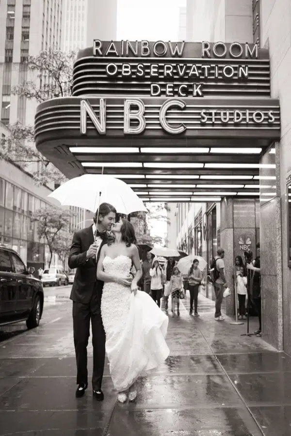 Shortly after their engagement, the planning process for a New York wedding began. Even though they never considered the Rainbow Room as a wedding venue, the couple knew it would be perfect once they walked into the renovation-filled construction site.