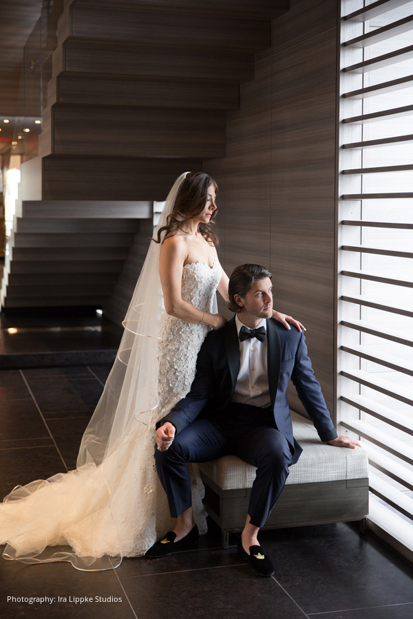 It was a classic New York venue that was going to be brand new and modern, while still being classic and glamorous,” says Perry. “I was dead set on a black tie wedding, because everyone just looks better; and once you put the effort into getting that dressed up, it really feels like a special occasion.”