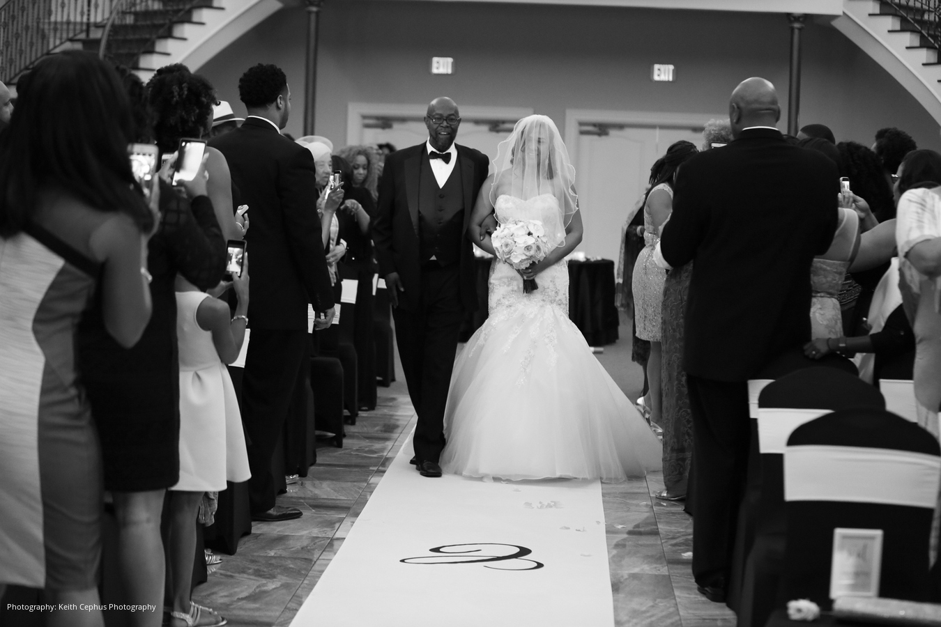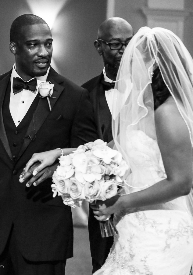 With the help of Sabrina Patrick, owner of Chic Soiree Events, the planning process culminated with a destination wedding in Indiana. Before the ceremony started, the bride recalls looking out over her balcony and feeling perfectly ready to marry the man she loves. Her favorite memory was walking down the aisle, looking into William’s eyes as he smiled and teared up. Even though he had already seen her during their pre-wedding photo shoot, he still had tears of joy when she made her entrance.