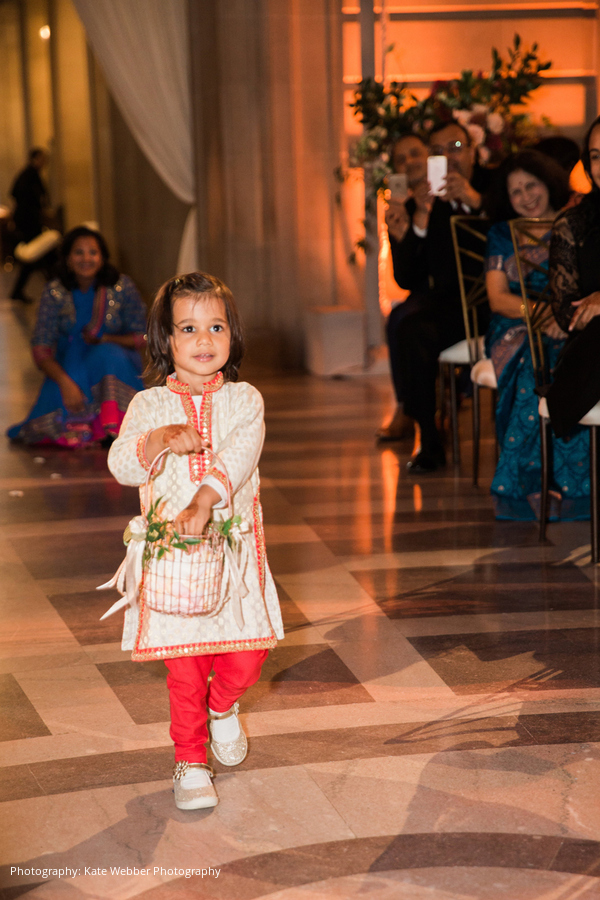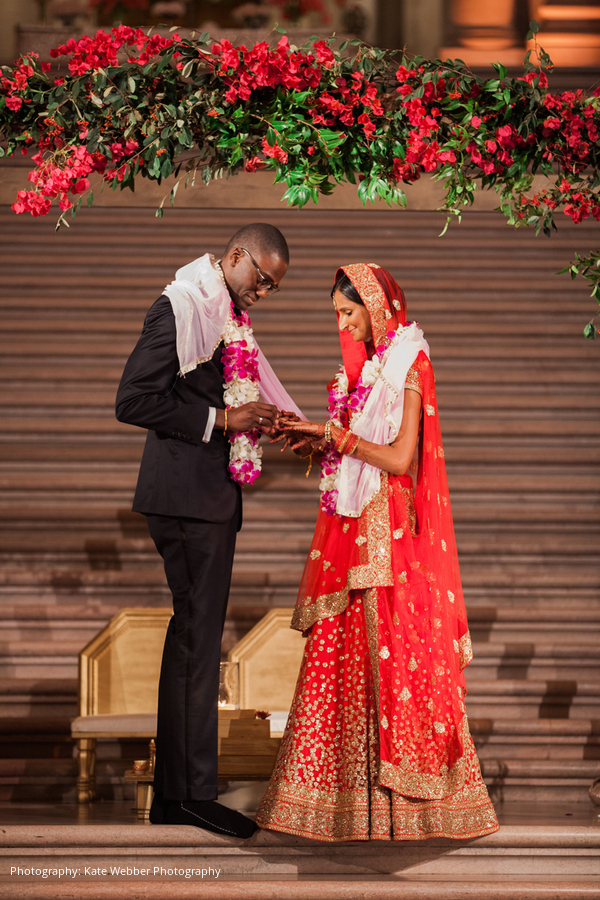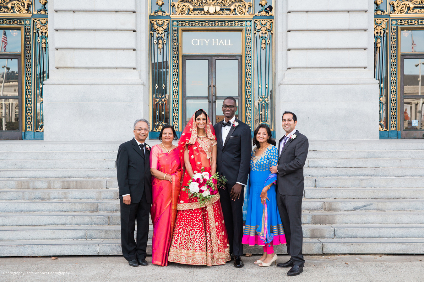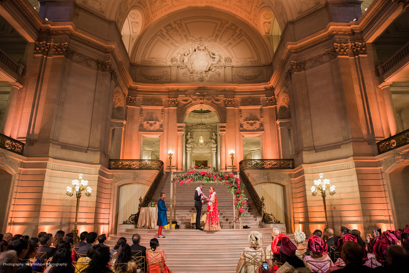 Location: San Francisco City Hall, San Francisco, CA; Planner: MAP Weddings & Events, San Francisco, CA; Photography: Kate Webber Photography; Floral Design: Angella Floral Arts, Fairfax, CA; Wedding Dress: Sabyasachi; Groom’s Attire: Indochino; Linen: La Tavola Fine Linen Rental, San Francisco, CA; Caterer: Taste Catering, San Francisco, CA; Rentals: Standard Party Rentals, Richmond, CA; Rentals: Classic Party Rentals, San Francisco, CA; Lighting: Everything Audio Visual, San Francisco, CA; Cake: SusieCakes, San Francisco, CA; Hair & Makeup: Professional Makeup Artistry, San Francisco, CA ; Cinematography: Weddings on Film, San Francisco, CA