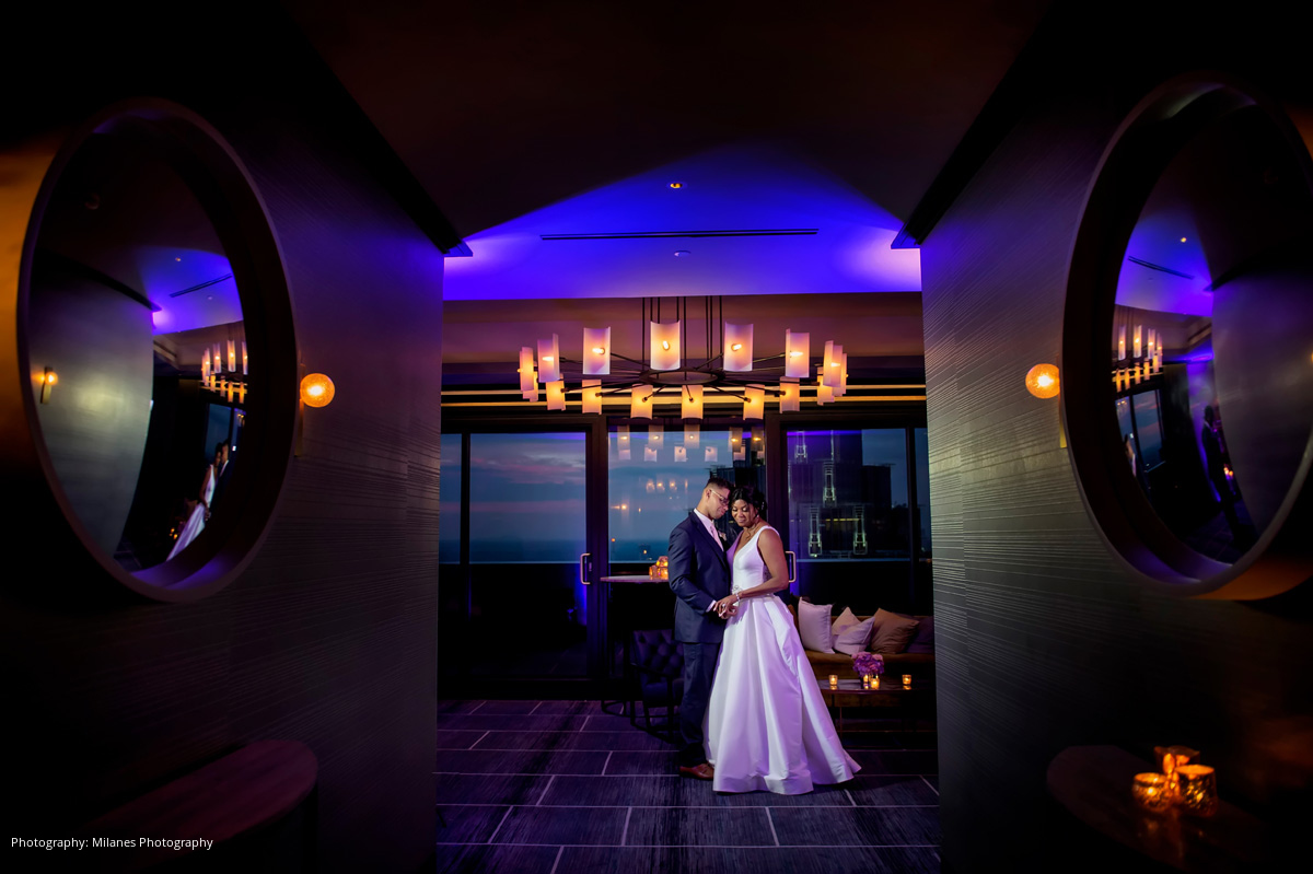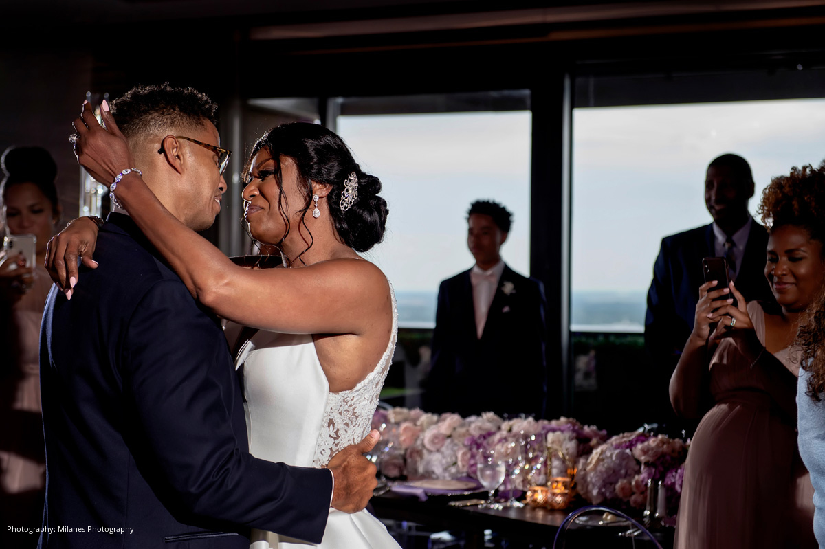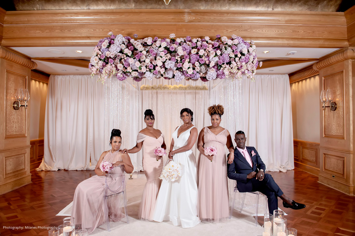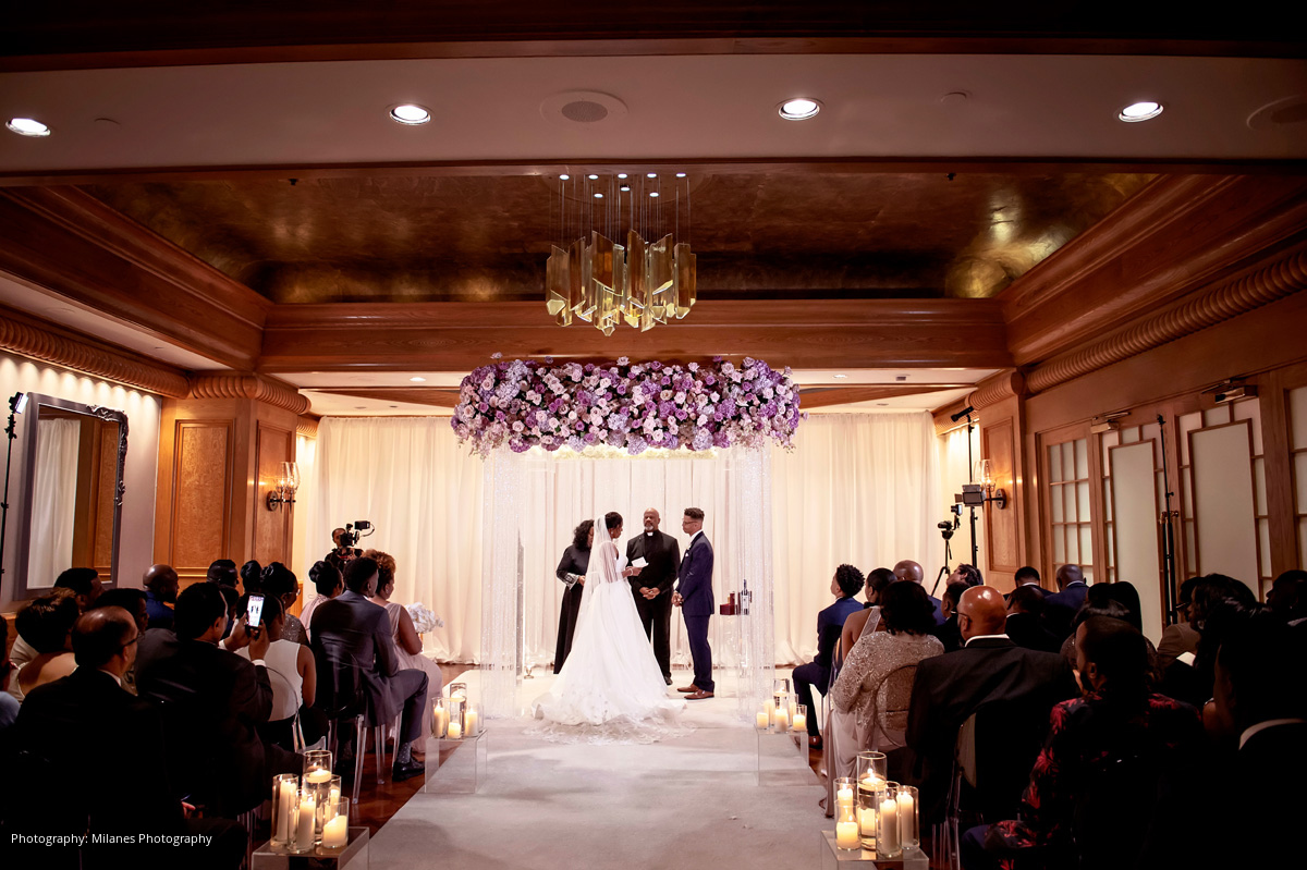 A wedding date was quickly set, and the 11-month-long wedding planning process passed smoothly. Cyndi and her daughter, the Matron of Honor, planned out most of the details including a color scheme of pinks and purples, and a city view.