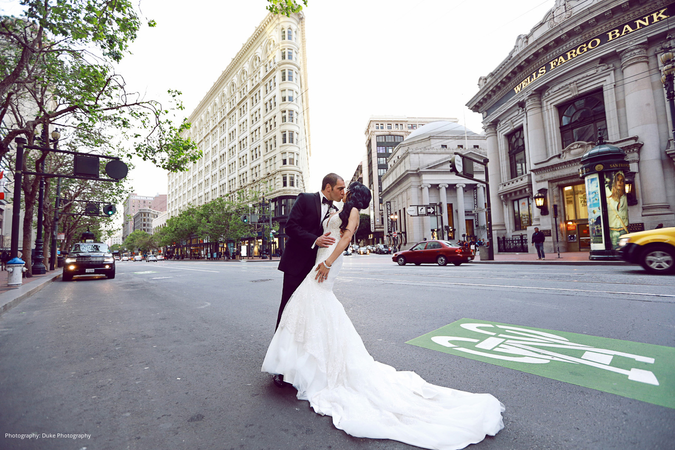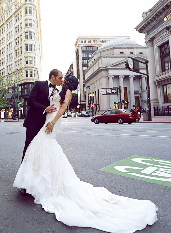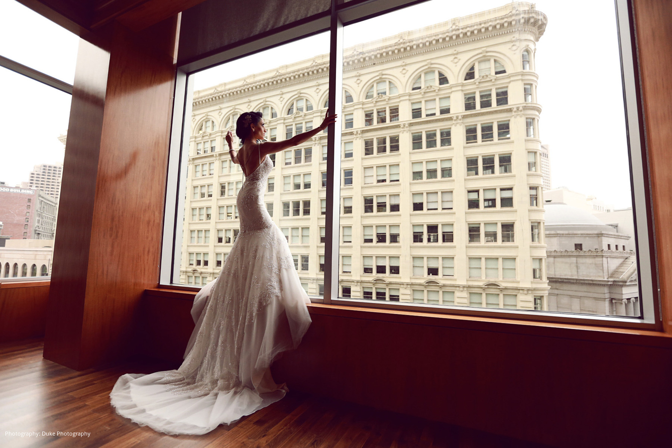 Their wedding day was met with sunny San Francisco weather. Aryan spent his morning playing basketball and Megan went for a walk before getting ready in the presidential suite with her makeup artist and photographer. Prior to the ceremony, they had their first look photo session, which was a beautiful moment for the pair. “When I saw Megan for our first look, I was not only speechless, but she took my breath away,” the groom says. “She was the most beautiful woman I had ever seen. I would love to relive that moment in time with her.”