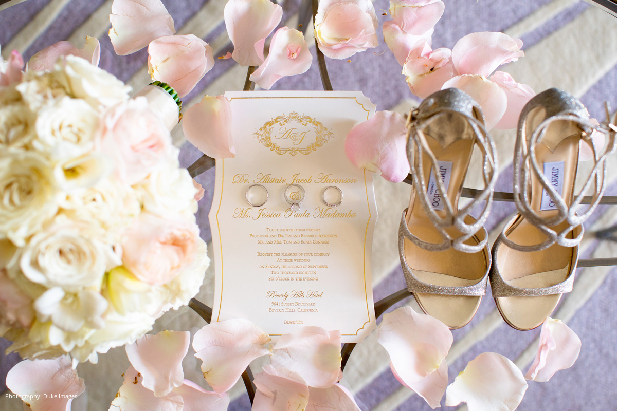 The wedding planning process was relatively smooth and easygoing, with the couple immediately falling in love with the Beverly Hills Hotel for their wedding venue and securing Maryam Forutan as their planner. “She took care of every detail to give us total peace of mind,” Jessica adds. “We also knew that with 12 months of planning, that our lifelong memories of our wedding had to be captured by the best photographer and videographer, Duke Photography and CustomMade Productions.