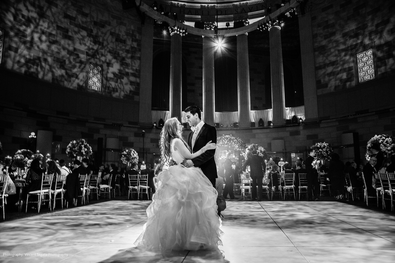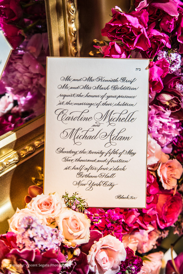 Since she designs and produces weddings on a daily basis, Caroline thought planning her own wedding would be a breeze. Ironically, the wedding planning process was quite difficult, as she was met with an overwhelming selection of possibilities and decisions to make. Eventually, Caroline chose to work with the glamour of Gotham Hall’s event space in New York City, keeping the wedding décor traditional and timeless with some modern elements mixed in.
