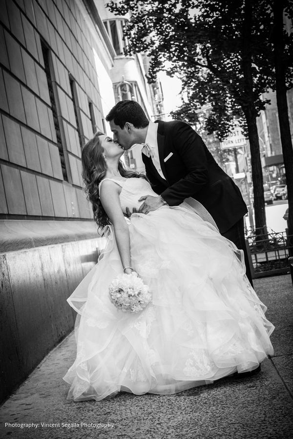They tented the Broadway side of Gotham Hall to accommodate a large guest list and pedestrians took pictures of the event, thinking there was someone famous in the midst. For the ceremony, the atmosphere was warm and loving–the perfect way to kick off the rest of the festivities.