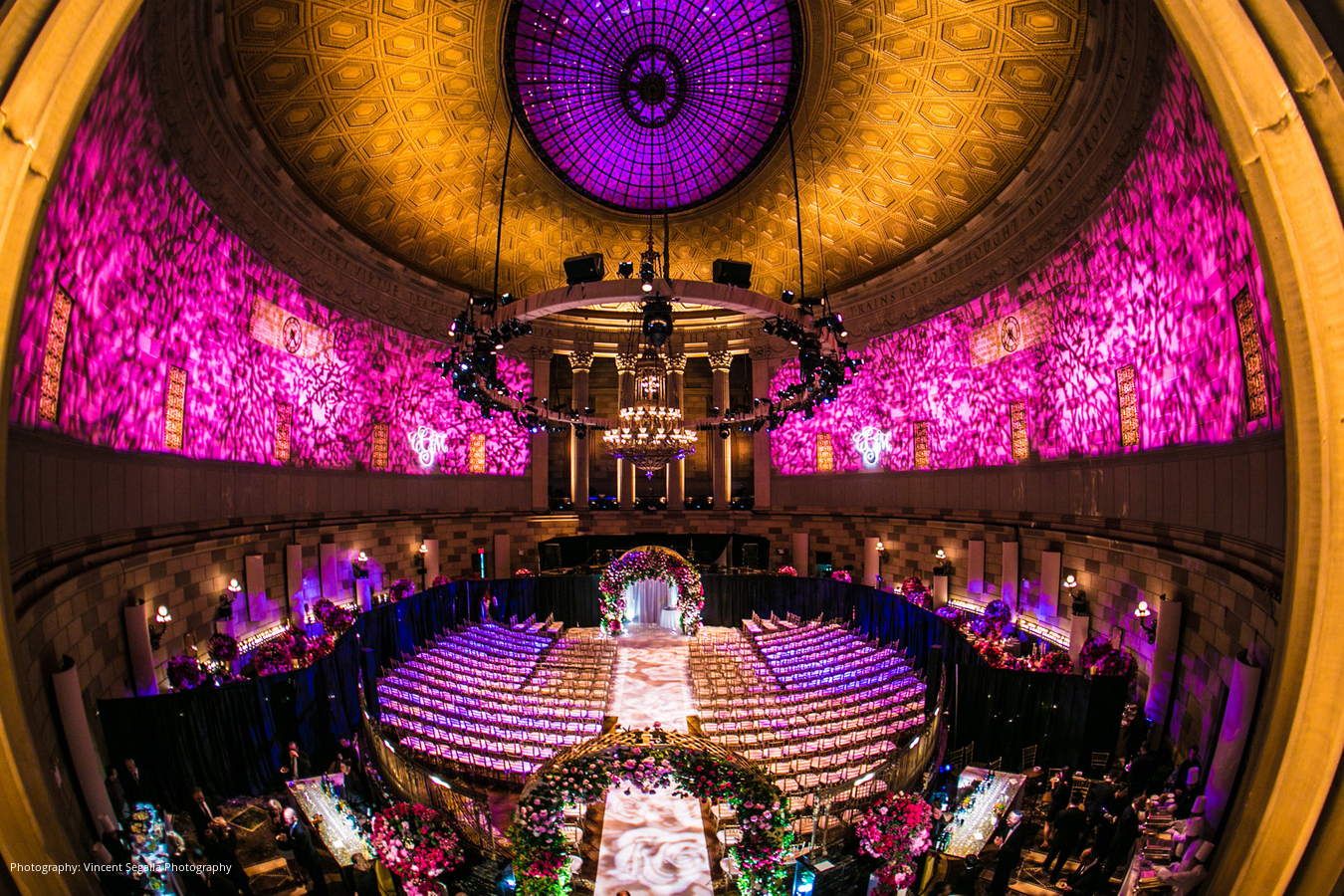 Location: Gotham Hall, New York, NY; Floral and Event Design, Planner, Linen: Birch Event Design, Brooklyn, NY; Rentals: Luxe Event Rentals & Decor, New York, NY; Lighting: Pegasus Lighting, Beaver Falls, PA