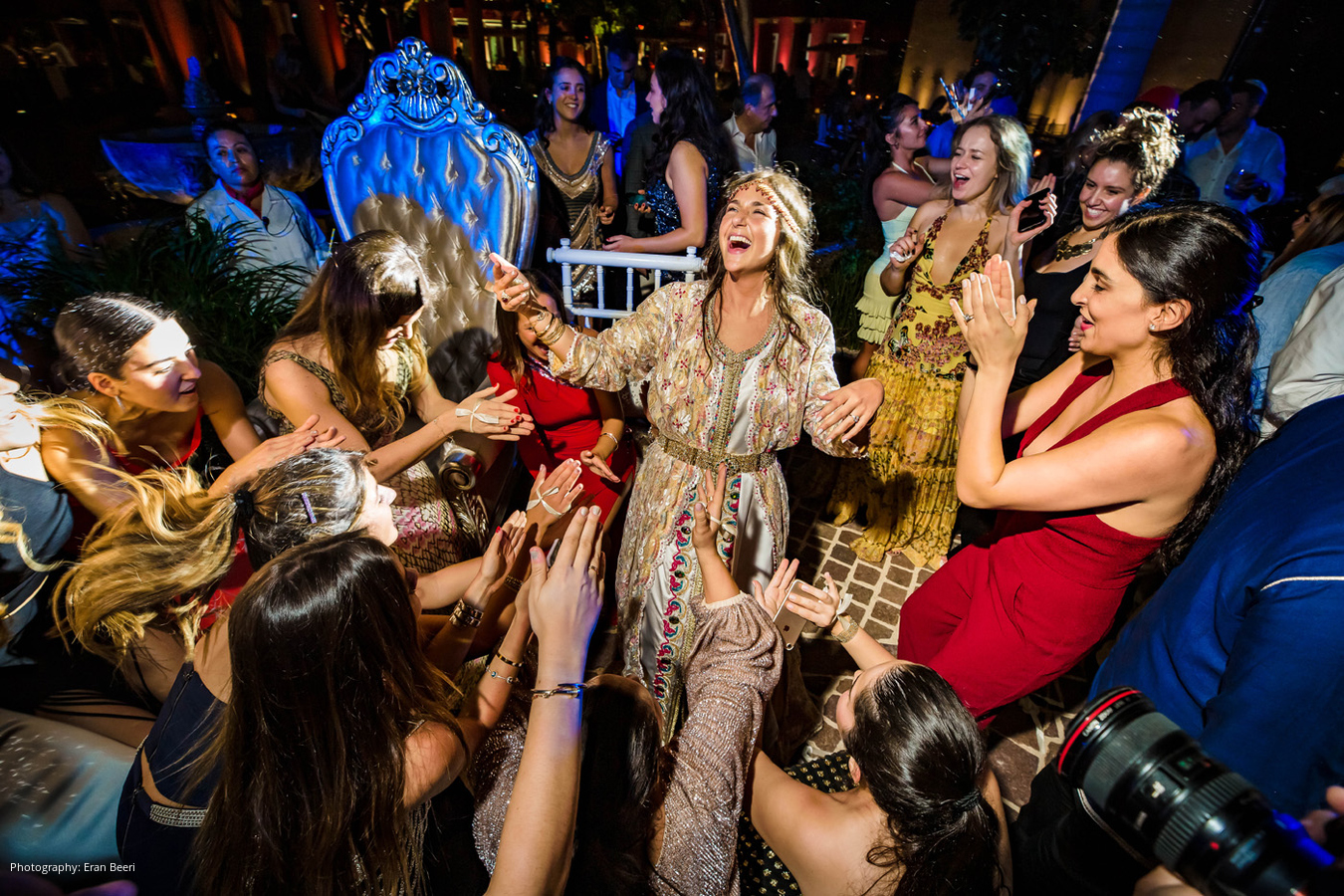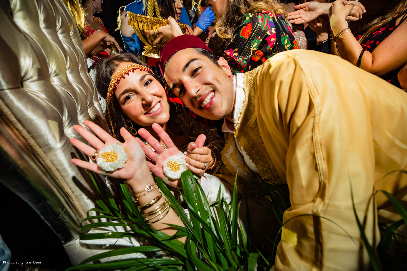 The wedding festivities began Thursday evening with a traditional Moroccan-Yemenite Henna celebration, customary of the groom’s heritage. The couple, dressed in traditional garments, was carried in by their closest friends on ceremonial chairs, as the two mothers followed and brought in the Henna to symbolize good health, luck and prosperity.