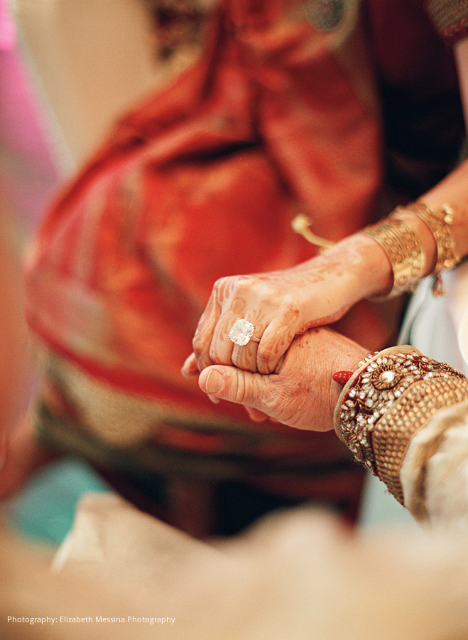 For their wedding day, they chose to hold a more intimate affair with only 33 guests in India. During their three-day stay at the Ananda Resort (the property was once the palace of a famous ruler), each guest was treated to a spa treatment and on the wedding day, all were invited to participate in the ritual of henna art. Family and friends also had the opportunity to go on a river rafting excursion, temple walk and a trip to the Ganges River for an ancient tradition of Ganga Aarti.