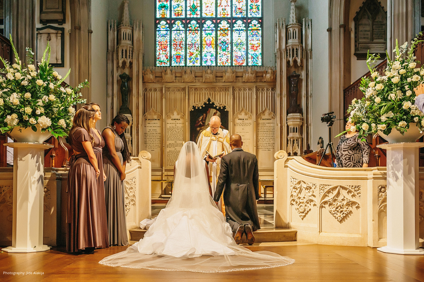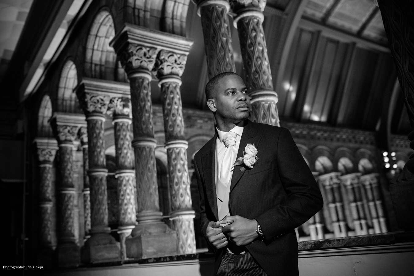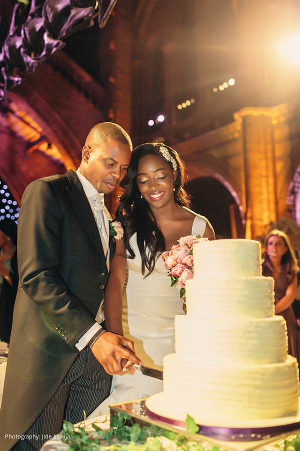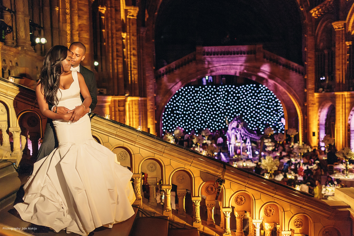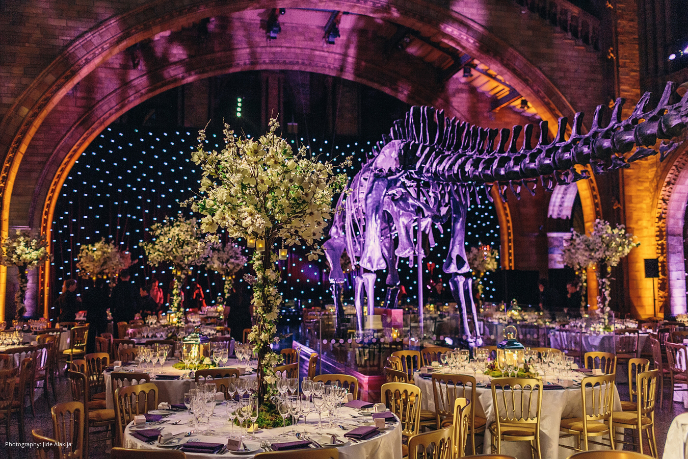 Location: The Natural History Museum, London, England, UK; Caterer and Linen: Payne and Gunter, London, England, UK; Cake: The Hummingbird Bakery, London, England, UK; Planner: Once Upon A Destination, London, England, UK; Floral Design: Essential Wedding Hire, London, England, UK