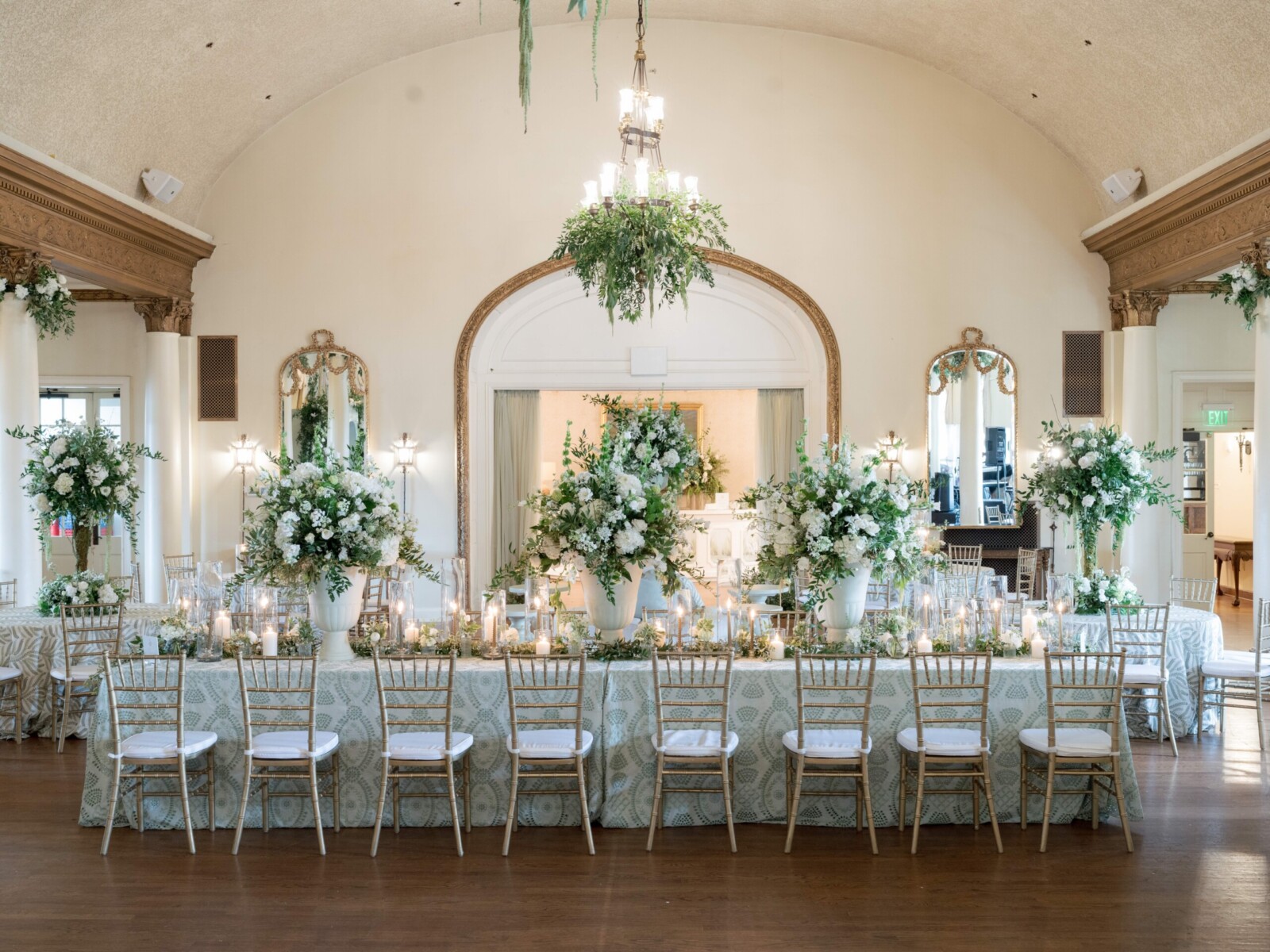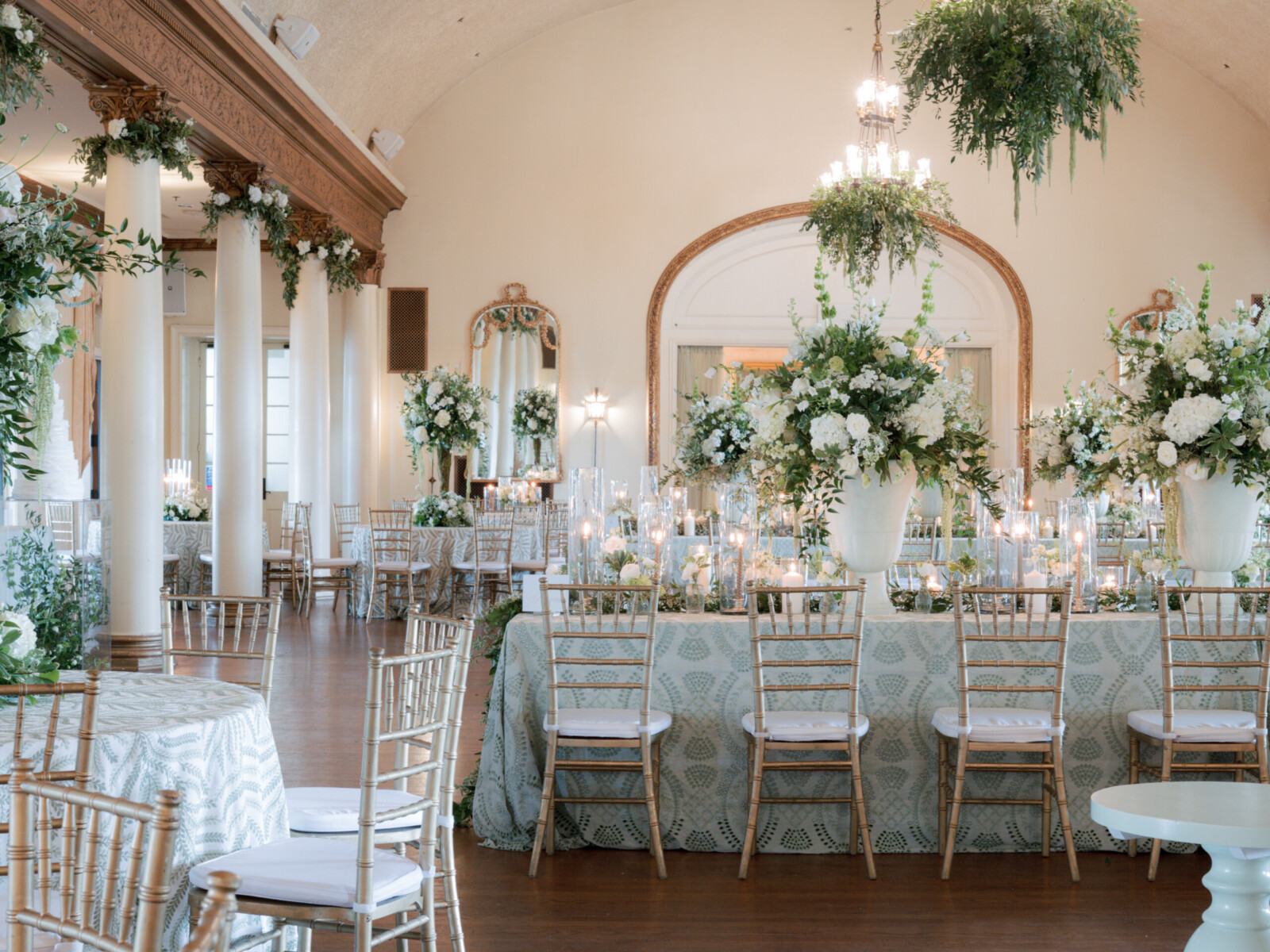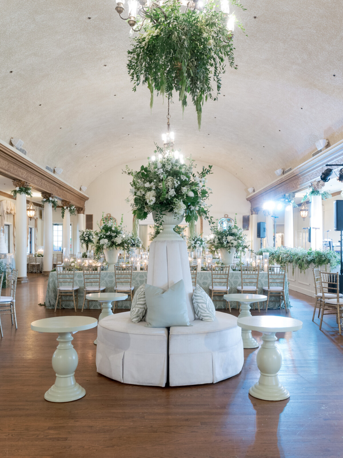 Inspired by East Tennessee, the couple wanted to highlight the region’s beauty through their wedding décor. Native and seasonal florals were used to create a clean, simple design. Cherokee Country Club provided the perfect canvas for the reception, nestled along a breathtaking bend of the Tennessee River with the Smoky Mountain ridgeline as a magnificent backdrop. With a lush array of green and white florals filling the ballroom, the couple’s ode to East Tennessee was the epitome of understated elegance, giving their wedding day a genuine sense of Southern charm.