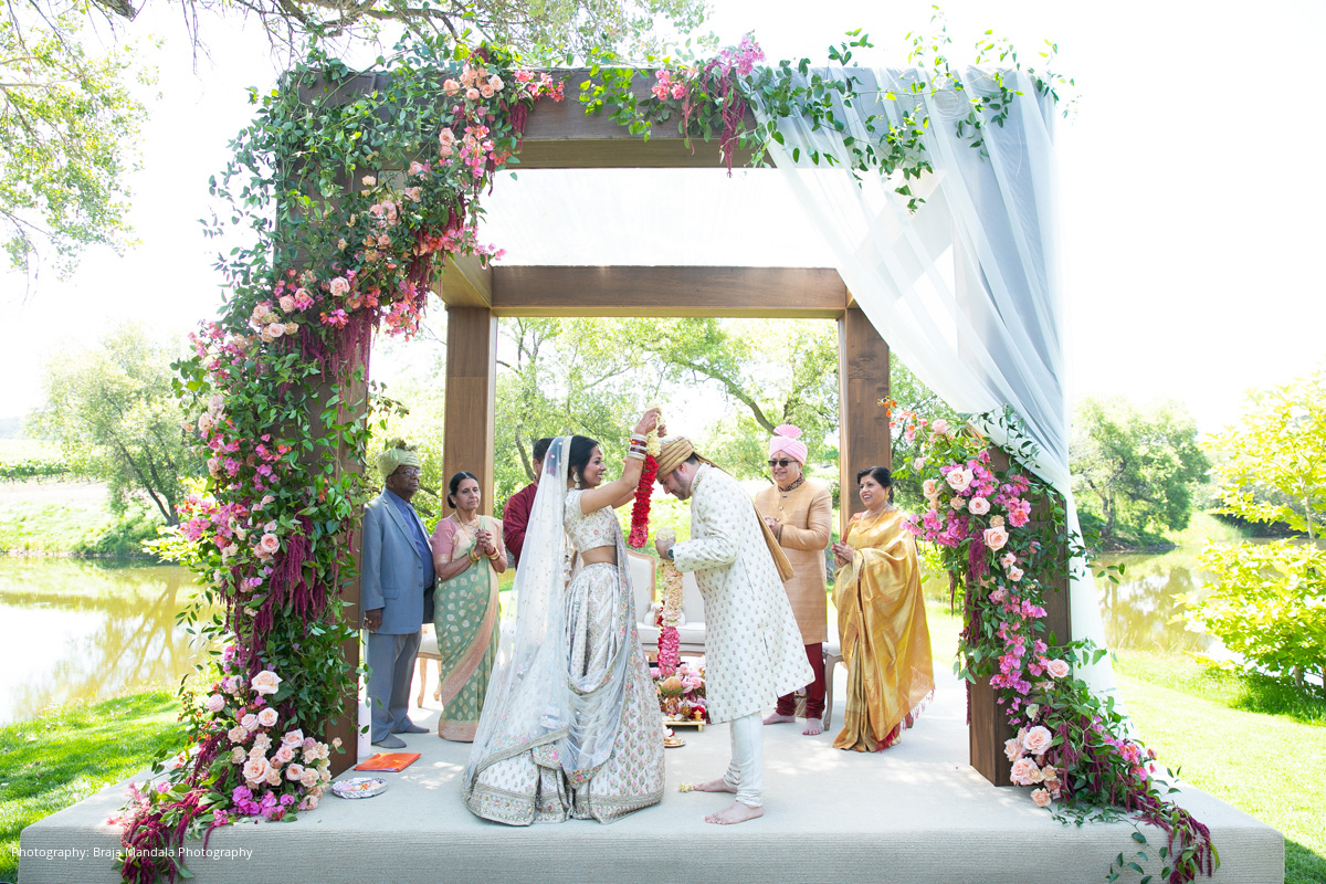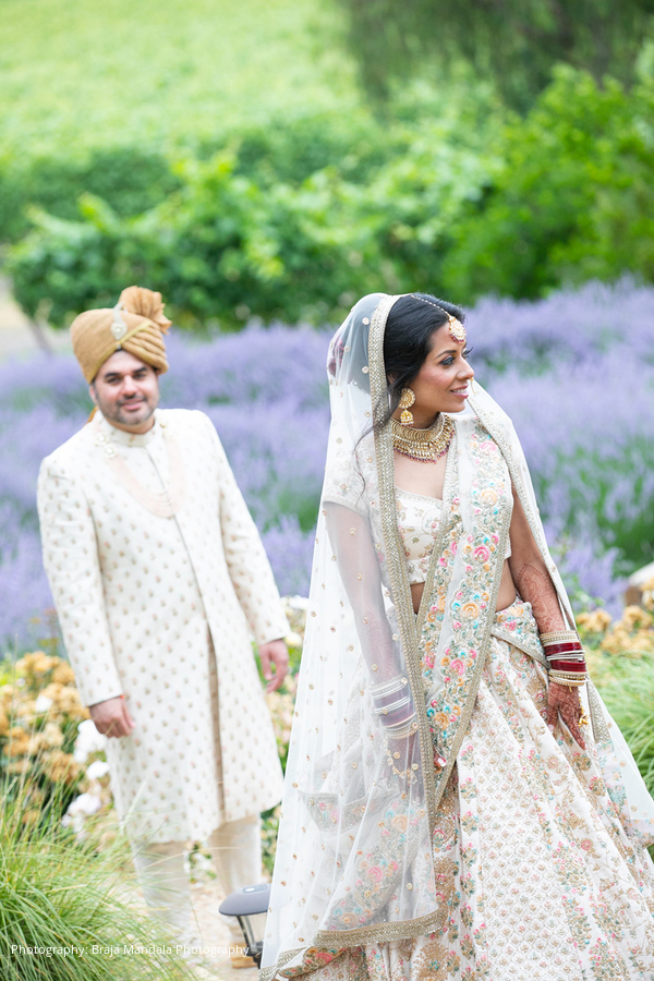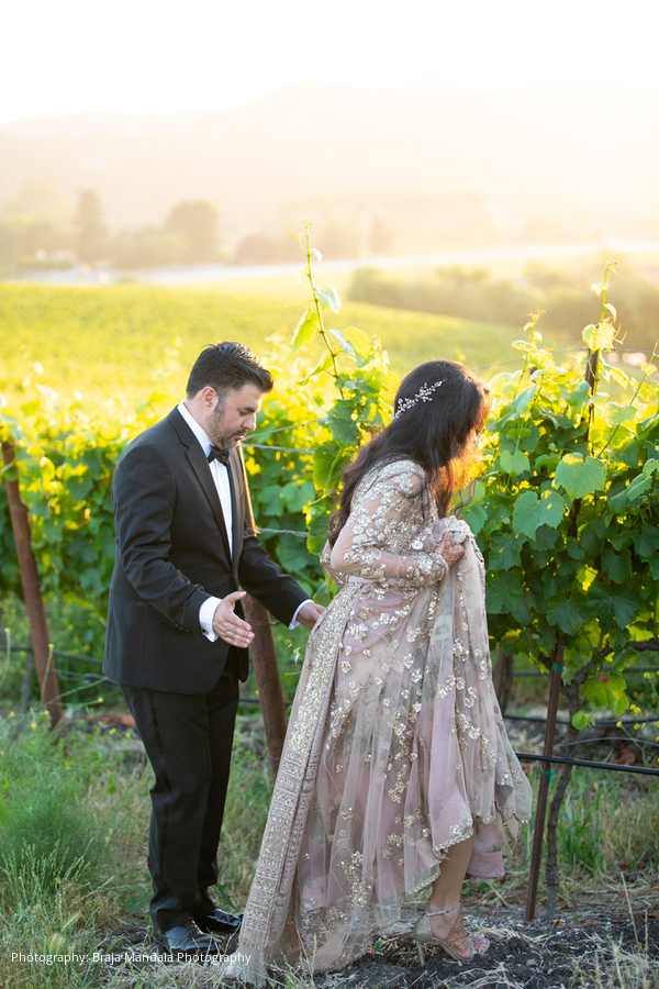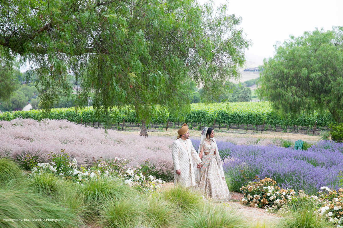 “Our favorite moments included being on the mandap (it was so peaceful during our ceremony) and sneaking away for sunset photos up in the vineyards,” recalls the bride. “Immediately after our wedding we spent a week at the naturally stunning and intimate Hotel Wailea in Maui. Watching our first sunrise as a married couple atop the Haleakala Crater is a moment we will never forget.”