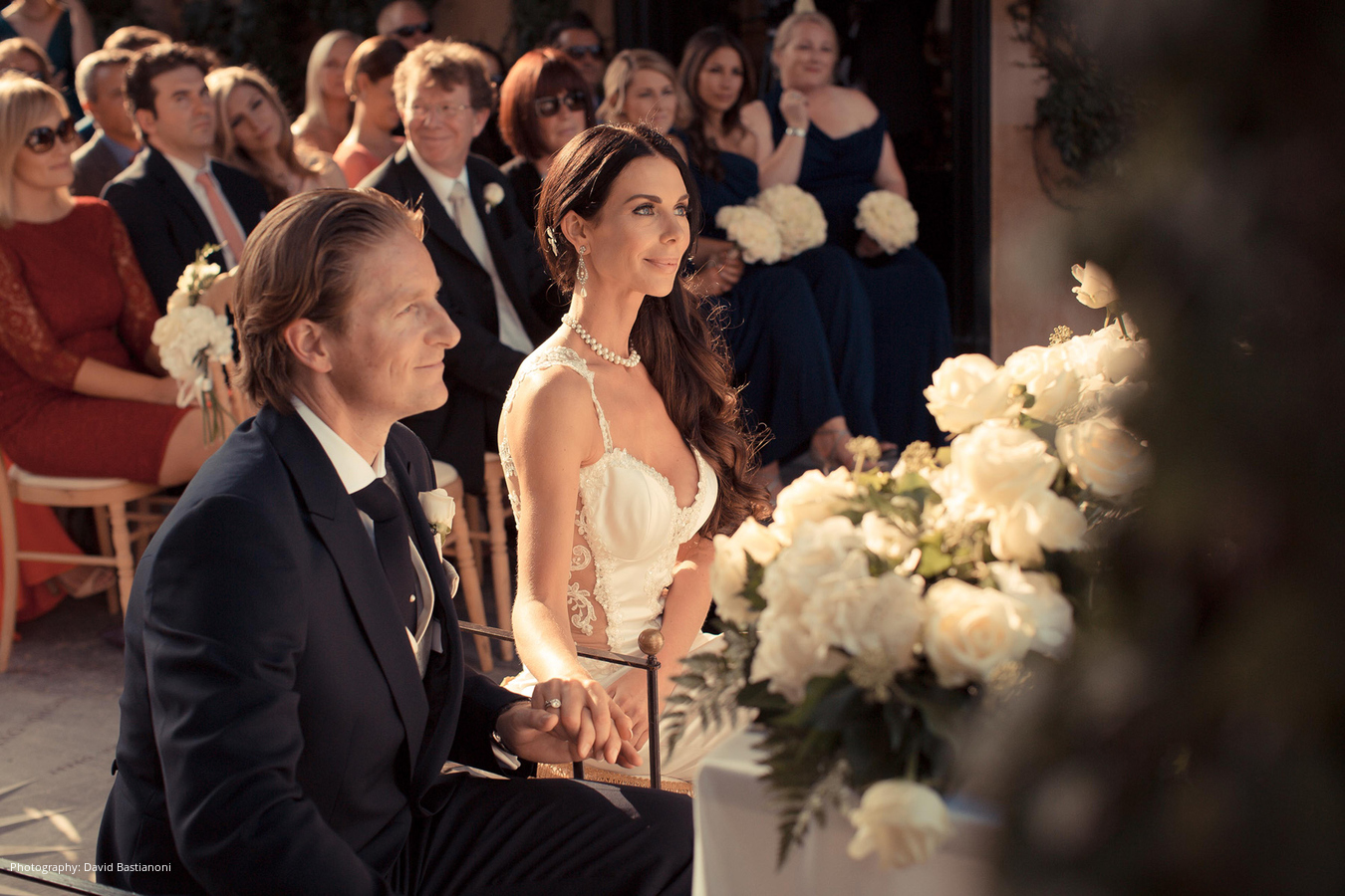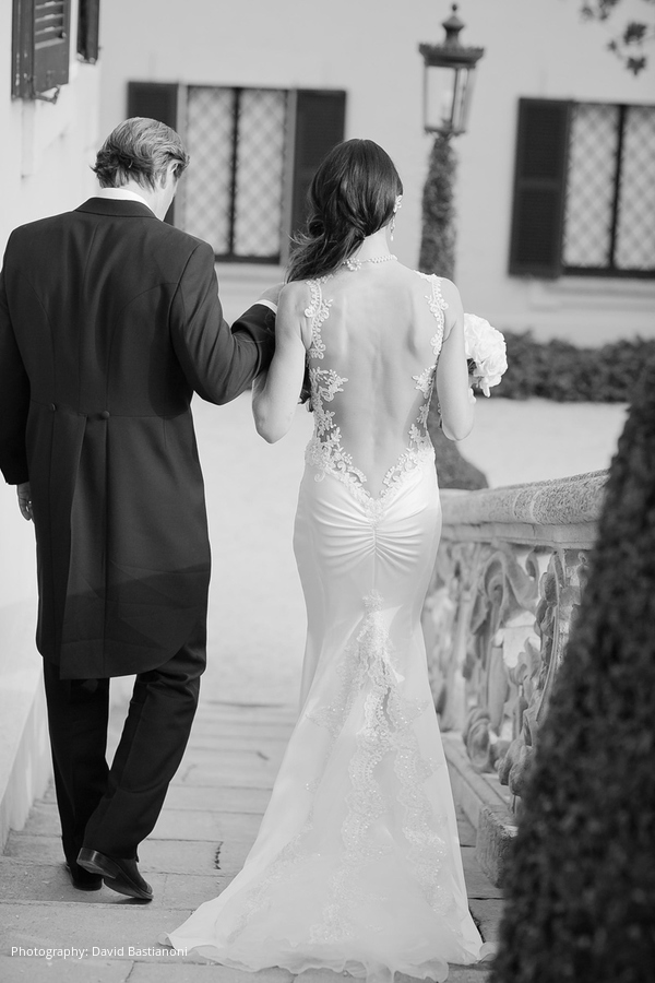 Event Design and Planner: Exclusive Italy Weddings, Udine, Italy; Floral Design: Vincenzo Dascanio, Milan, Italy; Floral Design: Barbara Botta Fiori, Lake Como, Italy; Ceremony and Reception Dress: Galia Lahav