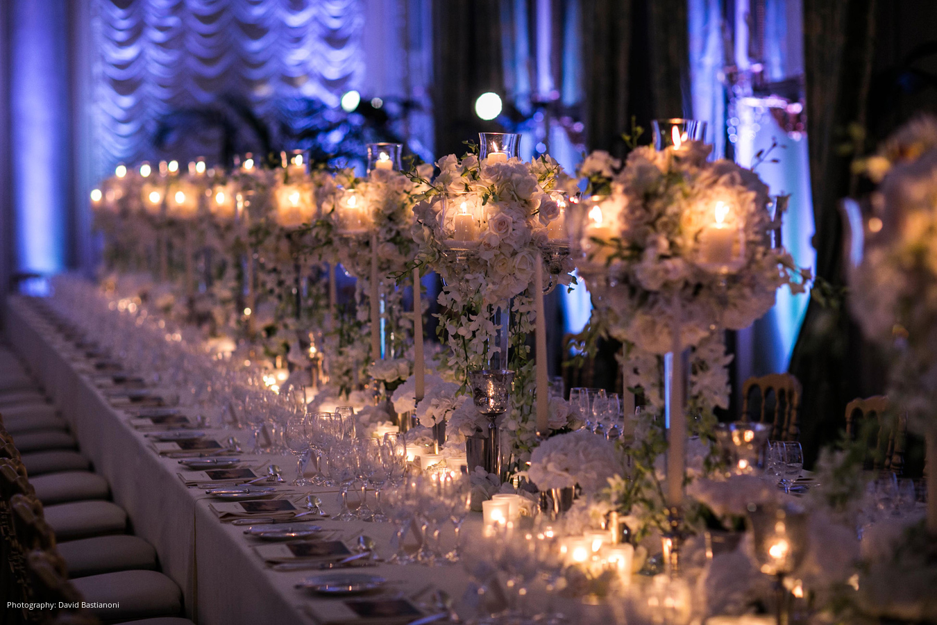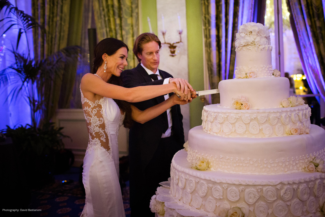 The wedding décor was inspired by the bride’s love of white roses, which was complemented by an elegant design in keeping with the venue’s natural charm and beauty. Subtle lighting changes altered the ambiance of the reception hall at Villa d’Este, where the newlyweds and their guests celebrated before moving on to the hotel’s nightclub and dancing until the early hours of the morning.