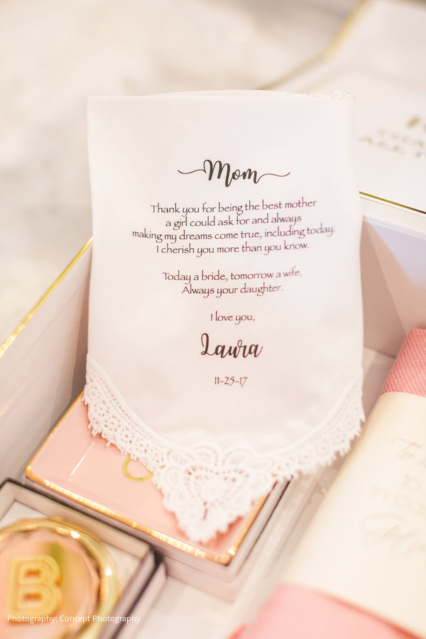 The proposal took place on May 13, 2016 – the day of Laura’s sister’s birthday. “John hired a limo to pick up my entire family and take us to a six-course dinner at the Ritz-Carlton,” Laura describes. “I didn’t know why he was being so extravagant, but I thought it was so sweet. He made a speech at the table to my family, giving thanks that we were all in each other’s lives, then pulled out the ring and asked me to be his wife. I was so surprised. It meant a lot that he included my whole family for this special moment.”