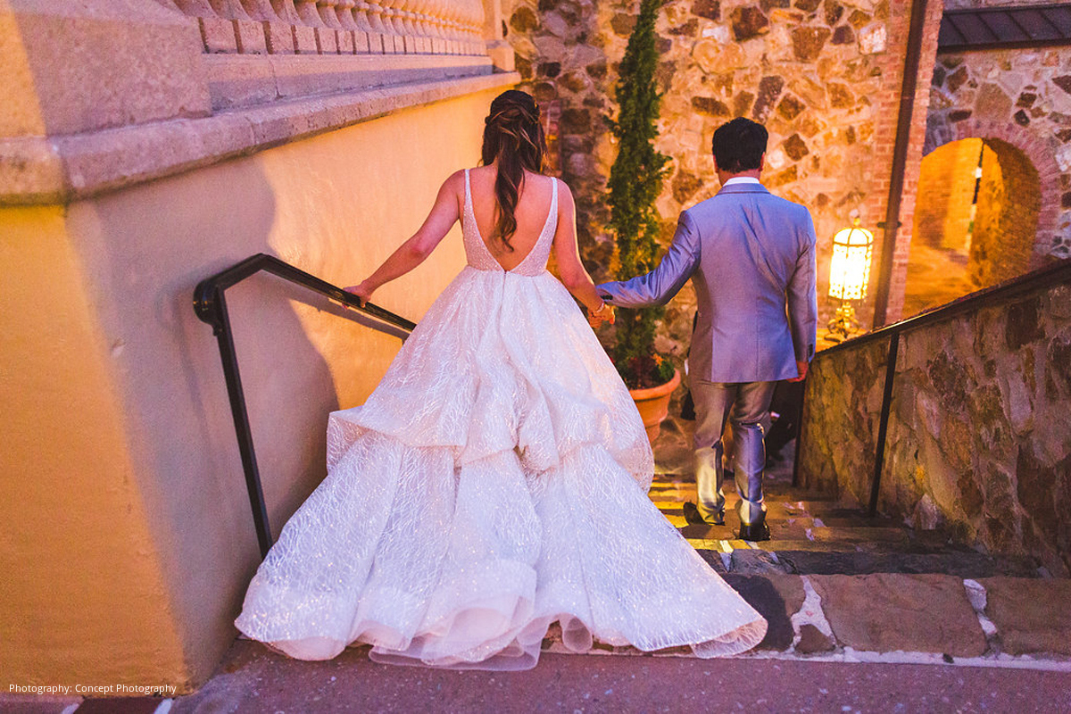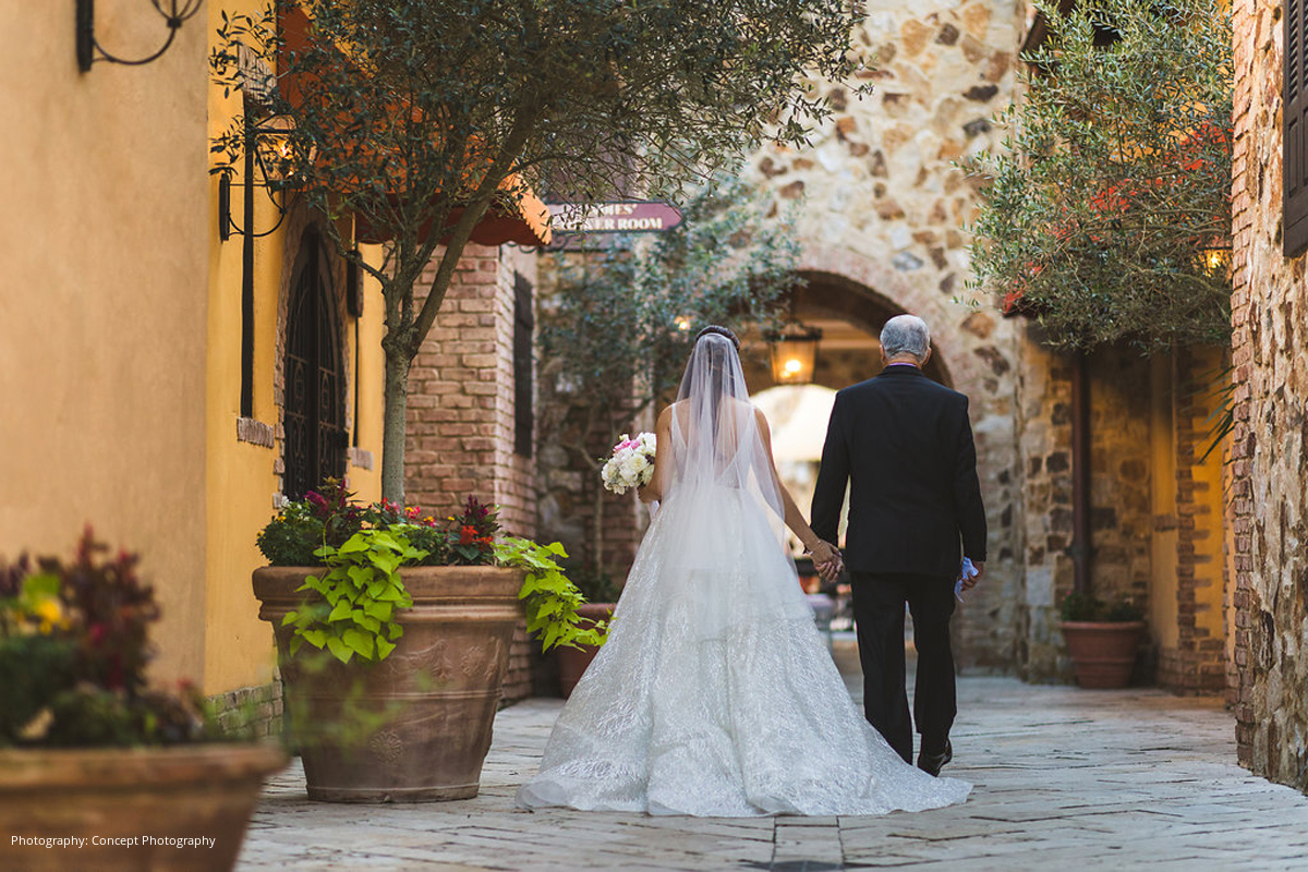 Having always envisioned a fall wedding, the bride-to-be immediately booked Bella Collina for November 25, 2017. “Bella was the first venue we visited, and we knew right away it was the right venue for us,” she explains. “I told my wedding planner, Brandee Gaar, that I wanted our day to be romantic and elegant with a whimsical touch. We couldn't have done this without her expertise and experience.”
