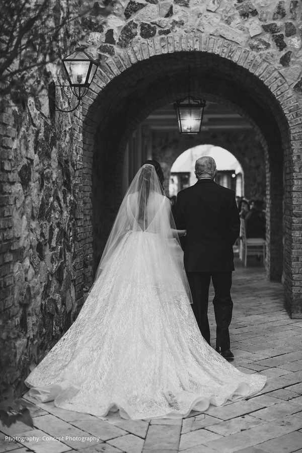The wedding day began with idyllic weather, and feelings of joyous nervousness for the bride and groom. Laura recalls the whole experience feeling like a dream, even before the ceremony began. “The first look with my father was so touching,” she says. “He told me he was so proud of me and excited for this new chapter in my life. It’s a moment I will cherish forever.”