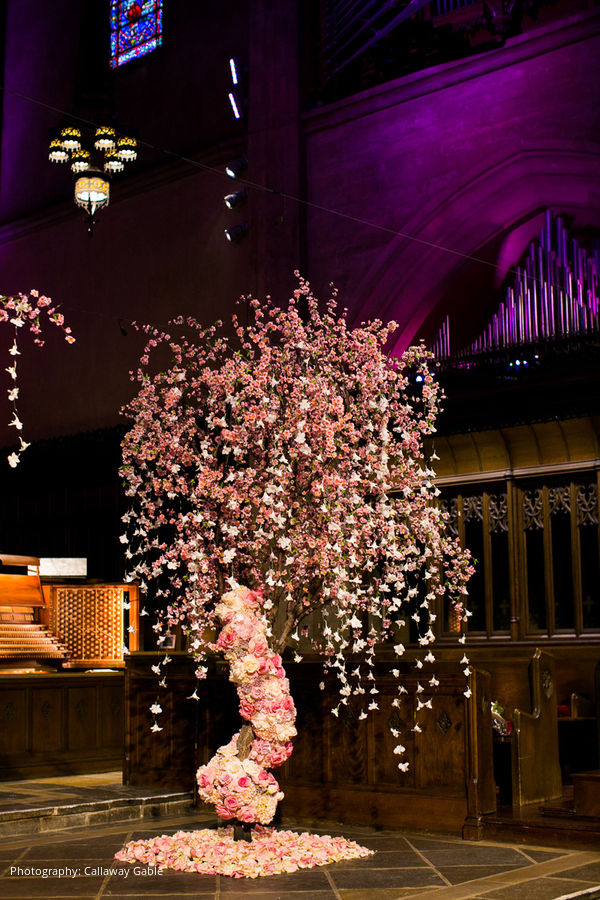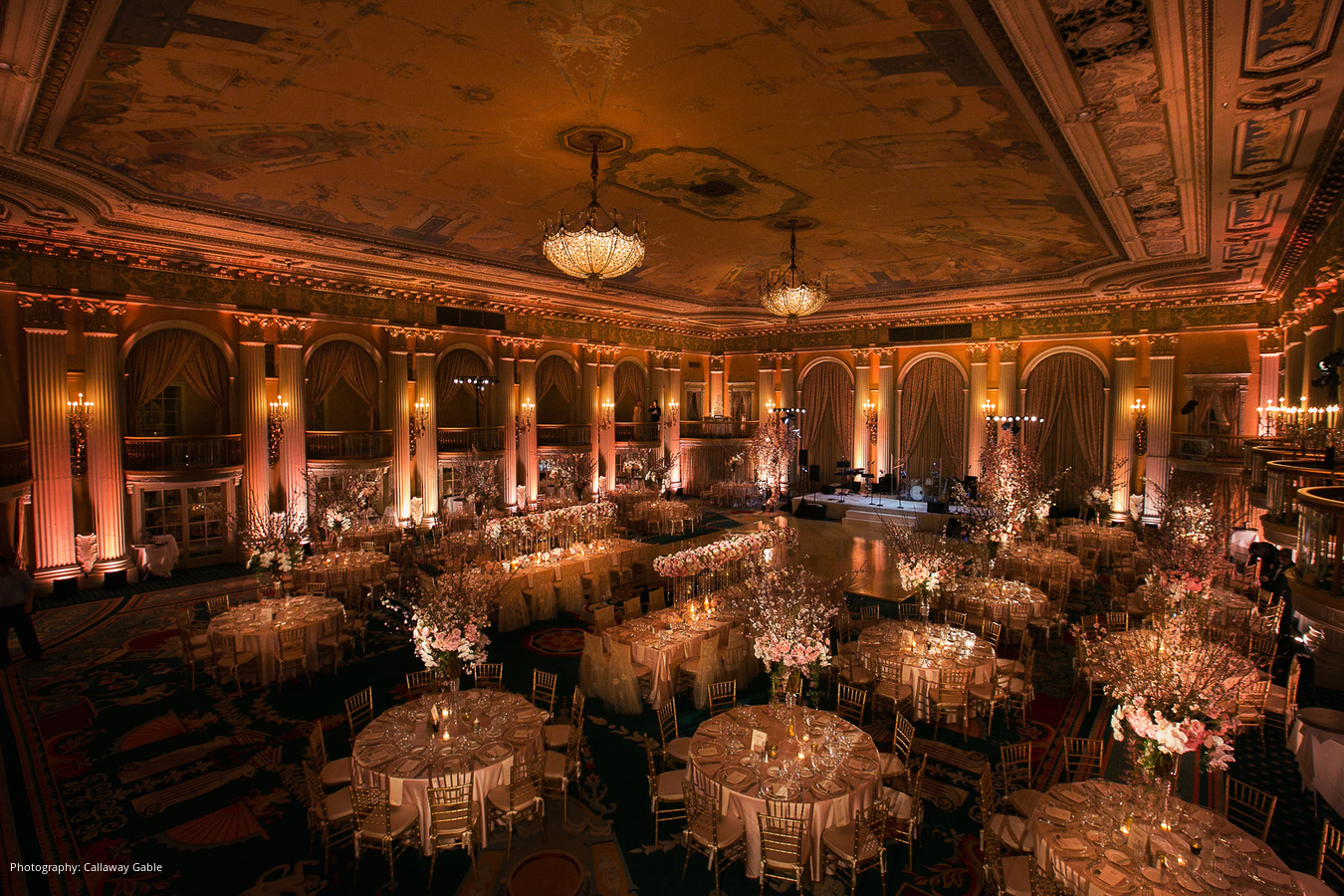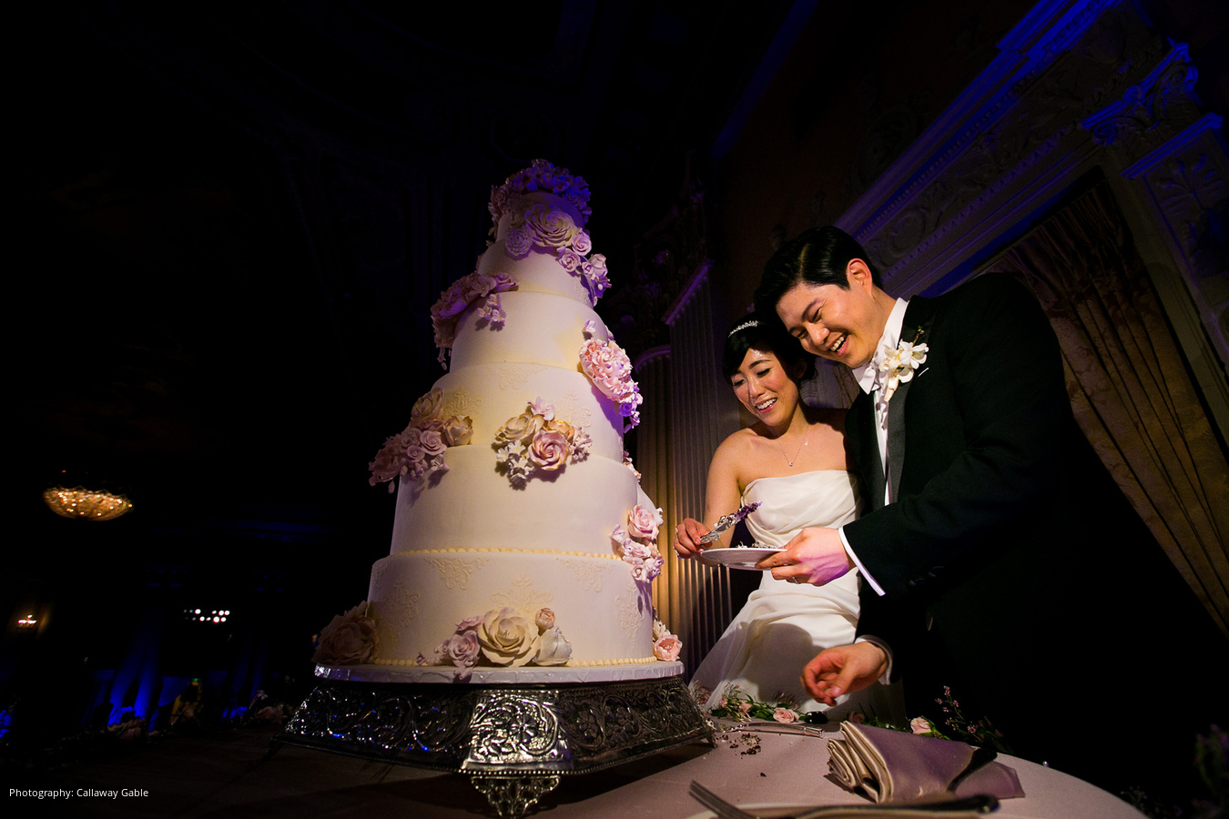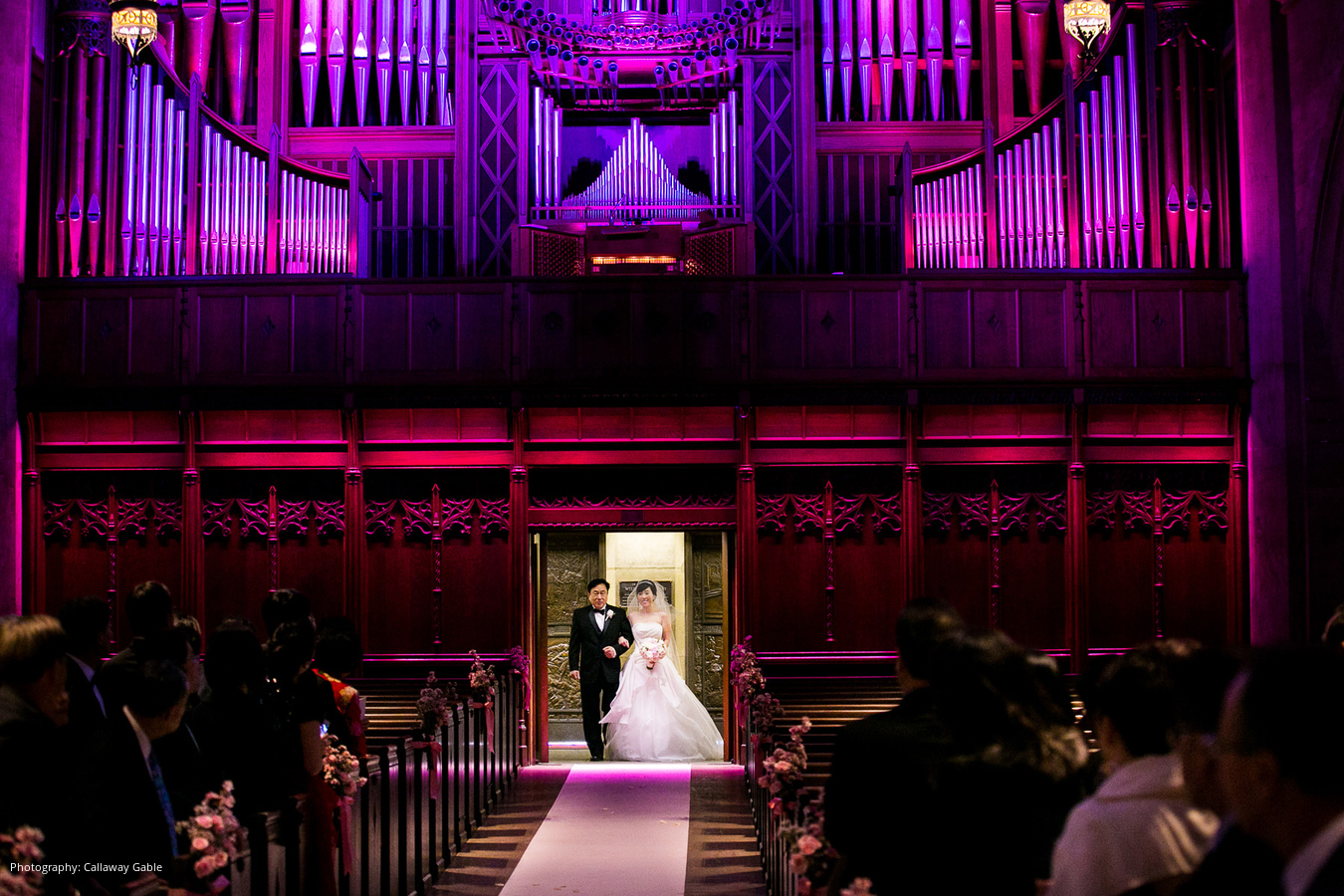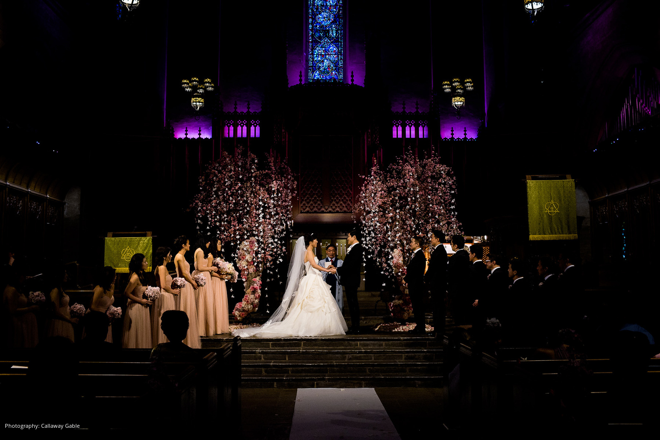 Ceremony Location: First Congressional Church of Los Angeles, Los Angeles, CA; Reception Location: Millennium Biltmore Hotel Los Angeles, Los Angeles, CA; Event Design and Planner: Exquisite Events, Los Angeles, CA; Floral Design: Eddie Zaratsian Lifestyle and Design, Los Angeles, CA; Cake: Fantasy Frostings, South Pasadena, CA; Stationery: Bethel Card & Paper, Los Angeles, CA; Wedding Dress: Vera Wang