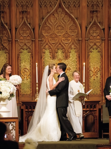 College sweethearts Lauren Fitzgerald and James Catacchio hit it off immediately when they met at Bentley University. “My bridesmaid, Erin, introduced us,” Lauren says. “We were alike in so many ways; our relationship just seemed so easy.”