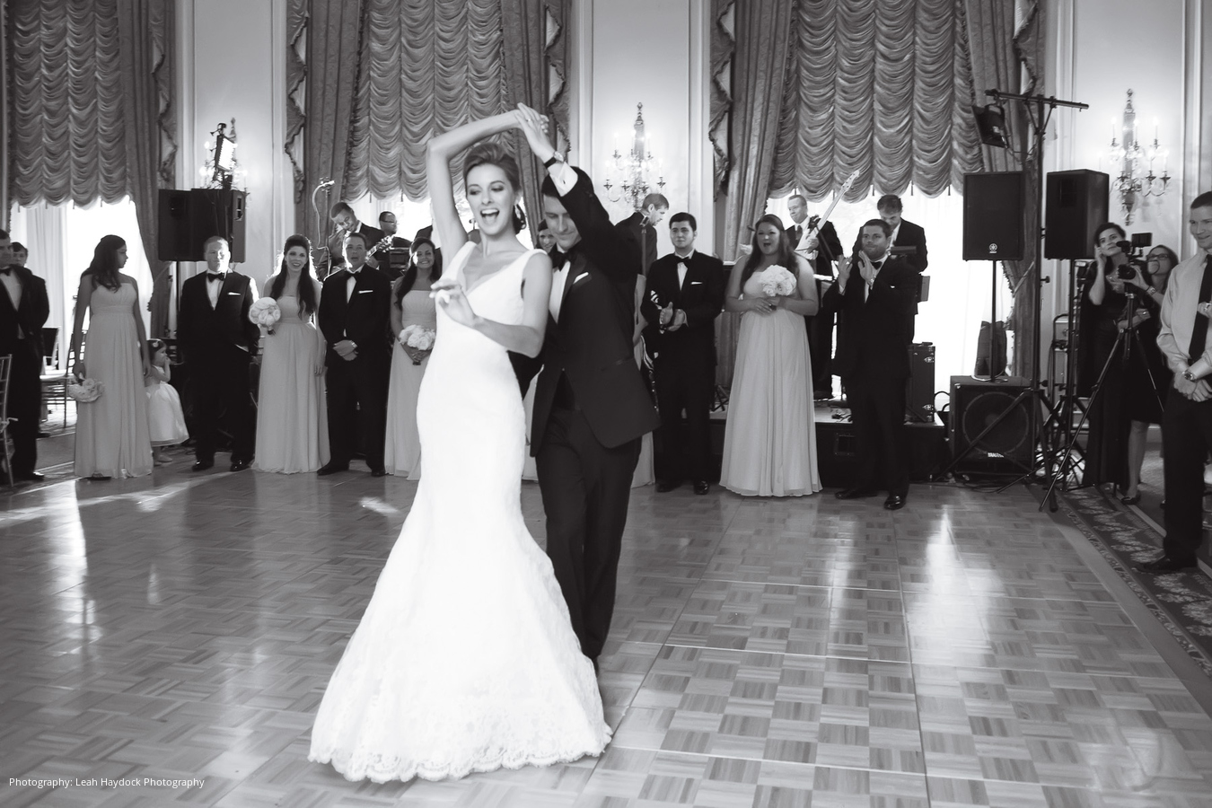 Lauren says that one of her favorite wedding day memories was of sneaking up to the balcony overlooking the ballroom with her new husband and taking in the sight of all their friends and family together, laughing and dancing.