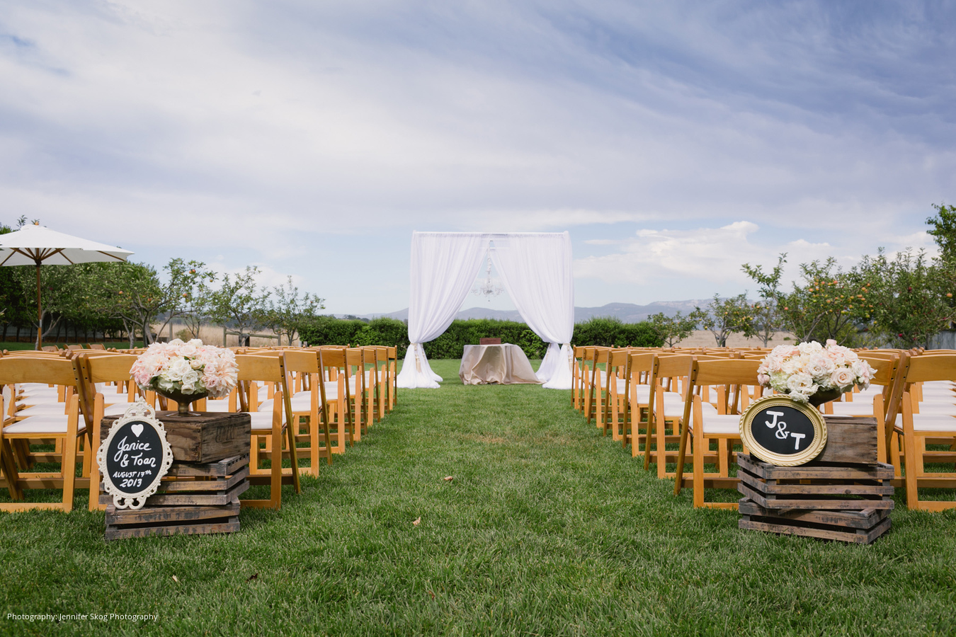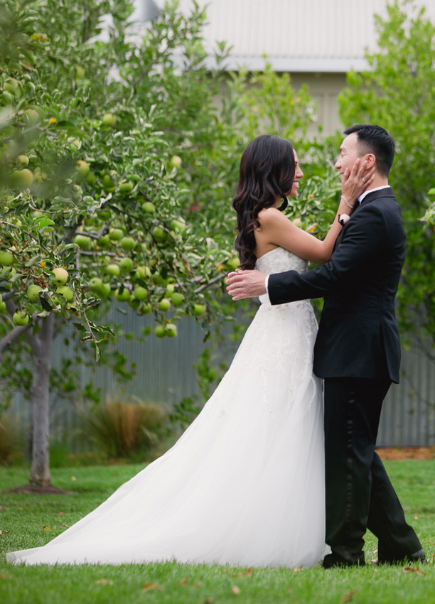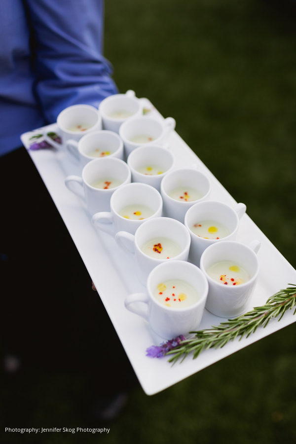 They chose The Carneros Inn as their wedding venue. “We were smitten with its intimate feel and perfect balance of modern luxury and California chic,” says Janice. As evidenced by the fruit trees and vegetable gardens on the grounds, The Carneros Inn’s restaurant farm, focuses on seasonal foods from the Napa Valley. Being lovers of their local markets and farms, this was important to the couple and they were so excited to craft a memorable and delicious menu of their favorite foods and wines.
