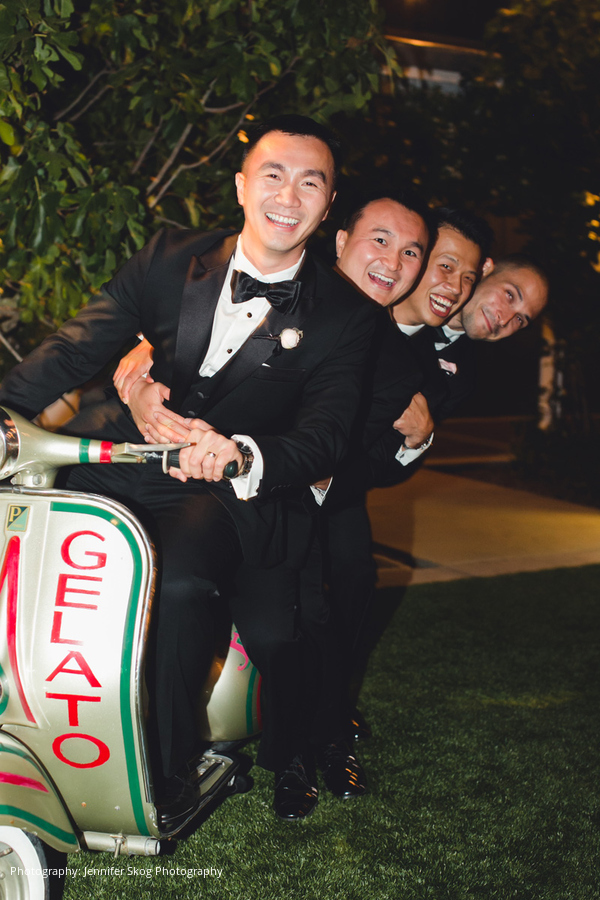 Toan would be sure to add that some of his highlights were the awesome band that played covers of his favorite Journey songs, the Vespa that not only served up scoops of gelato but was the perfect photo op, and the very popular late night bites of sliders and grilled cheeses after all that dancing!