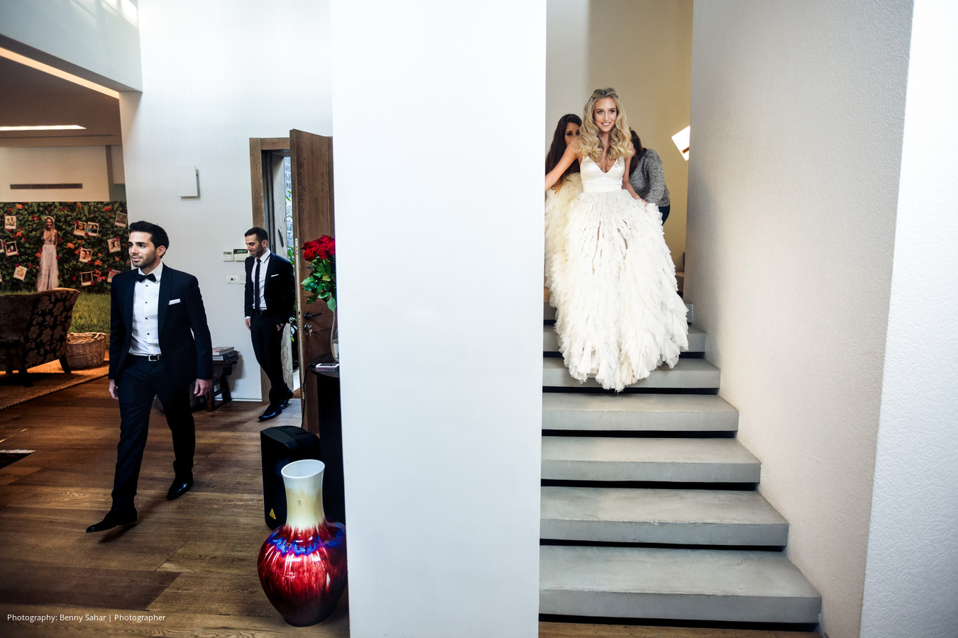 Although Yarden had her sights set on a small hotel wedding during the summer, the big day turned into a lavish affair at Hangar 11 TLV with nearly 1,000 guests. The wedding planning process lasted five months, during which the couple had a second engagement party. Tomer’s mother also stepped in to assist with all the details.