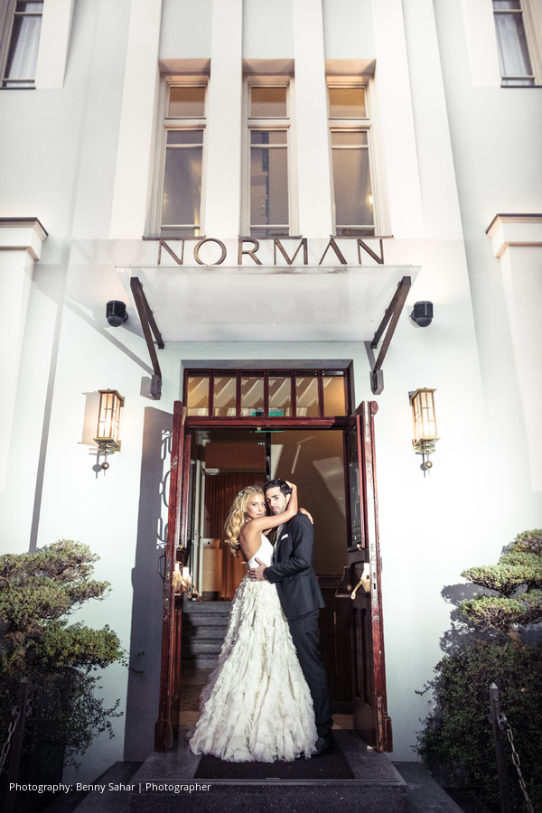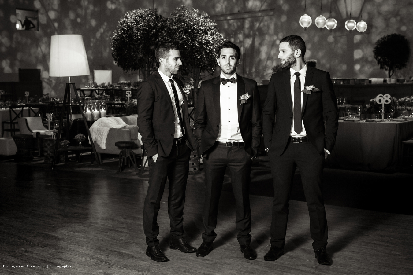 On the day of the wedding, the bride and groom got ready at their parents’ houses – the bride accompanied by her mother and friends, and the groom spending time with his brothers. Prior to the ceremony, Yarden was picked up at the Norman Hotel for photos, and the couple arrived at Hangar 11 at 7pm for an intimate gathering with 300 of their closest friends.