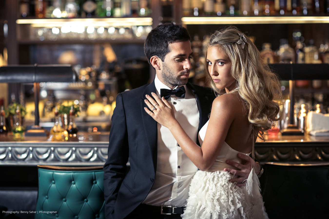 Location: Hangar 11, Tel Aviv, Israel; Event Design and Planner: KBY-Designs, Tel Aviv, Israel; Photography: Benny Sahar; Lighting: Cochavi & Klein Light Architects, Tel Aviv, Israel; Entertainment: ATISUTO, Tel Aviv, Israel; Wedding Dress: Vivi Bellaish; Hair: Liraz Agam,