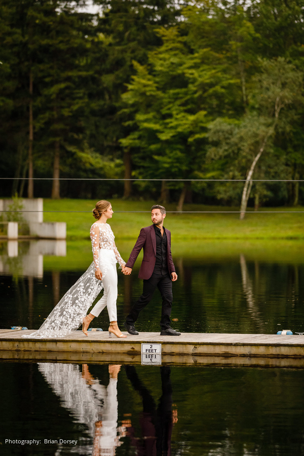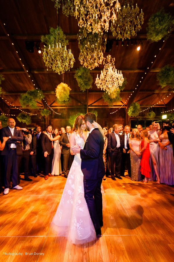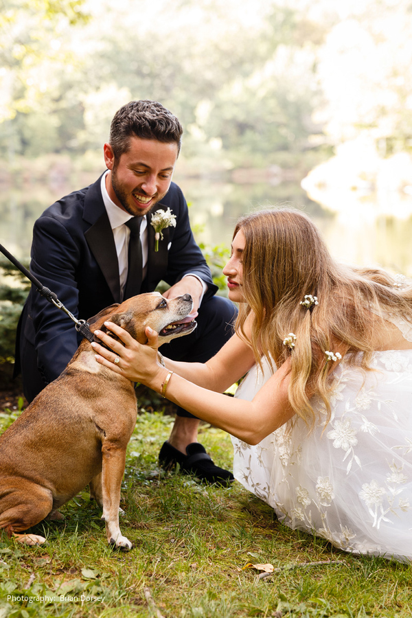 After living together for three years, Scott popped the question on his birthday, in a park where he and Casey grew up. With a photographer hiding in the bushes and their entire family nearby, he got down on one knee and asked Casey – and her dog, Kilroy – to be his forever. “Planning the wedding was both seamless and impossible,” Casey recalls. “My mother has been a luxury wedding and event planner for twenty years, while I joined the family business one year prior.